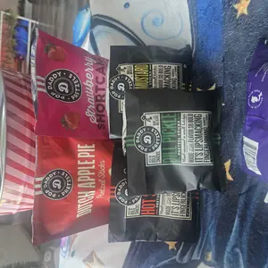 Tin came damaged (box was not damaged, lid was inside on its side like someone forced it in there. Missing flavors (I believe it was supposed to have 9 +3 big bags, has 5 + 3 big bags. Opened one big bag, flavor is really strong and spot on. Haven't tried them all (and can't with missing some). Not sure I can recommend with the damage and missing flavors.