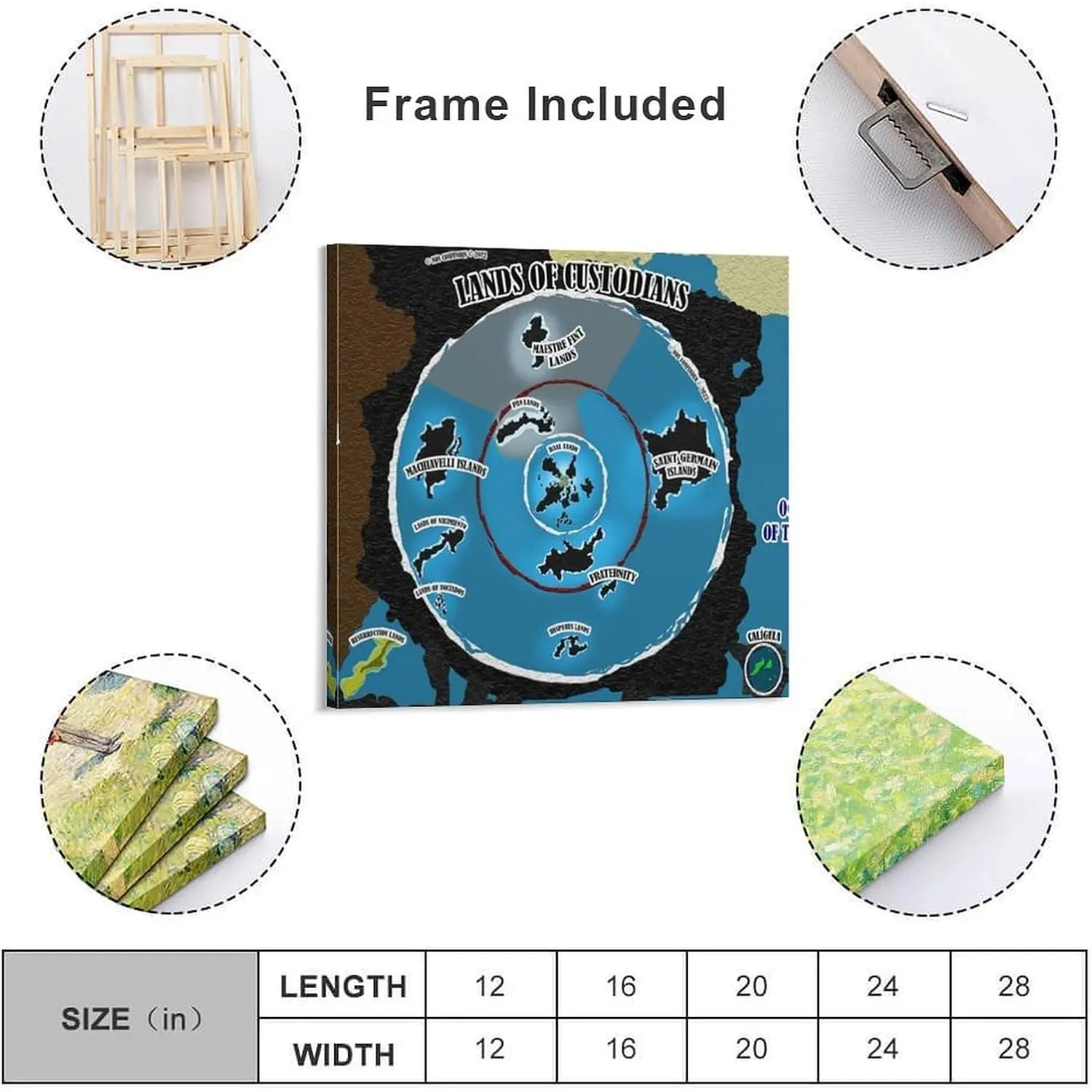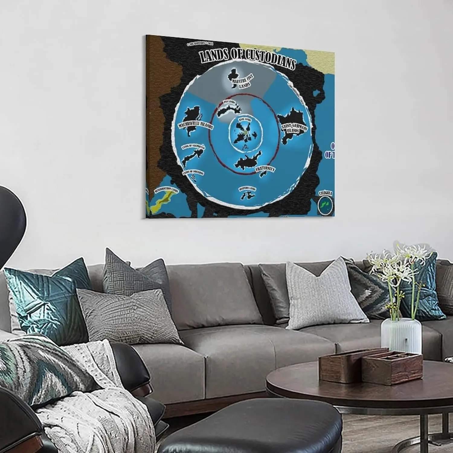 Terra Infinita Flat Earth Map Poster Canvas Poster Wall Art Decor Print Picture Paintings for Living Room Bedroom Decoration 24x24inch(60x60cm)