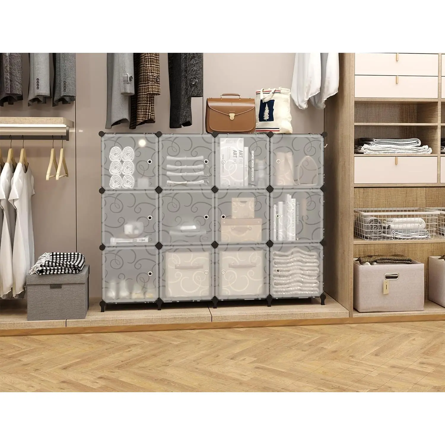 Multi-use Storage: 12 cube closet Organizer storage shelf provide adequate space to organize and free up closet space, you can configure them to fit in your closet, bedroom, room, office; works well to organize clothes, toys, books, bins, bag, shoes, craftwork, yarn, pillows. way to keep things organized