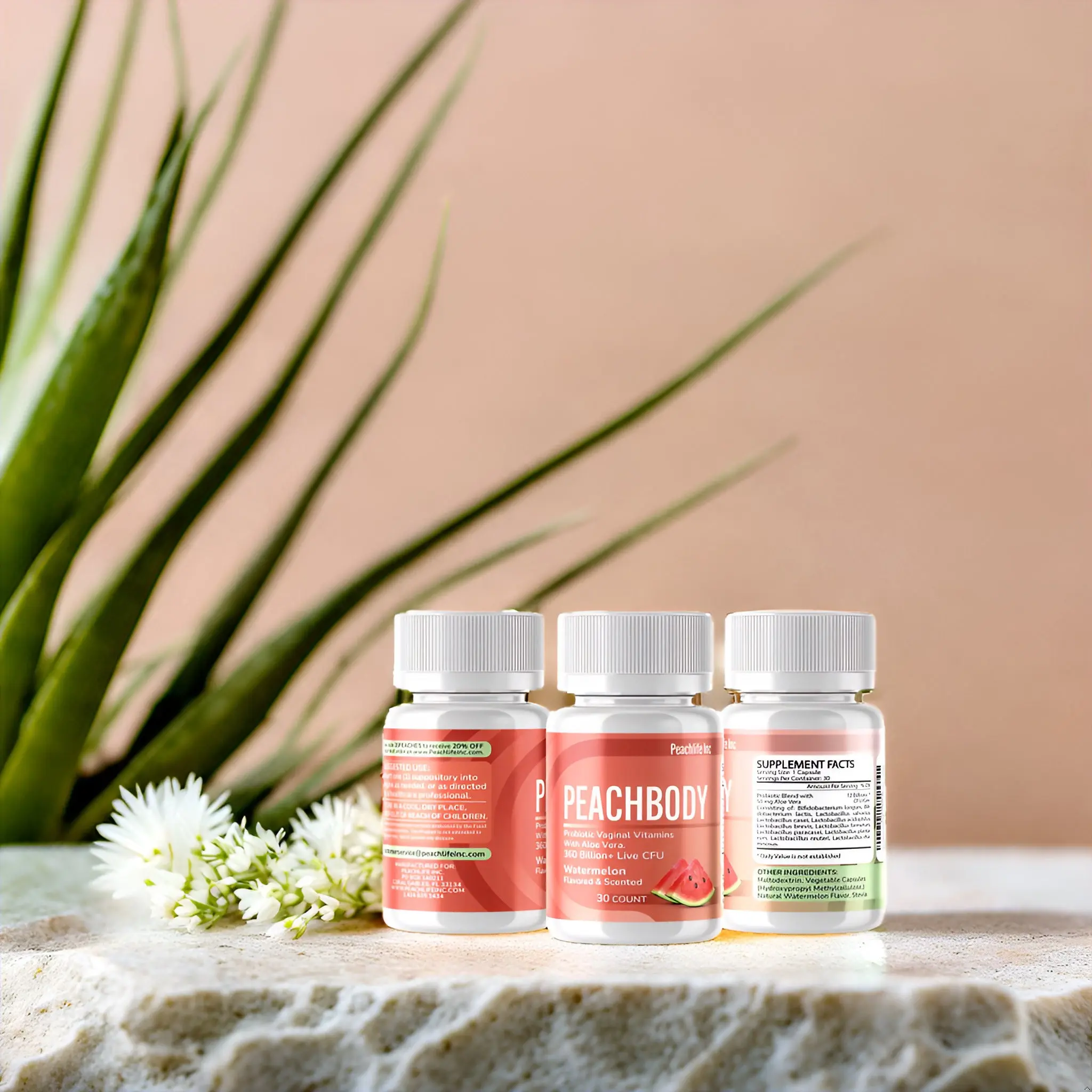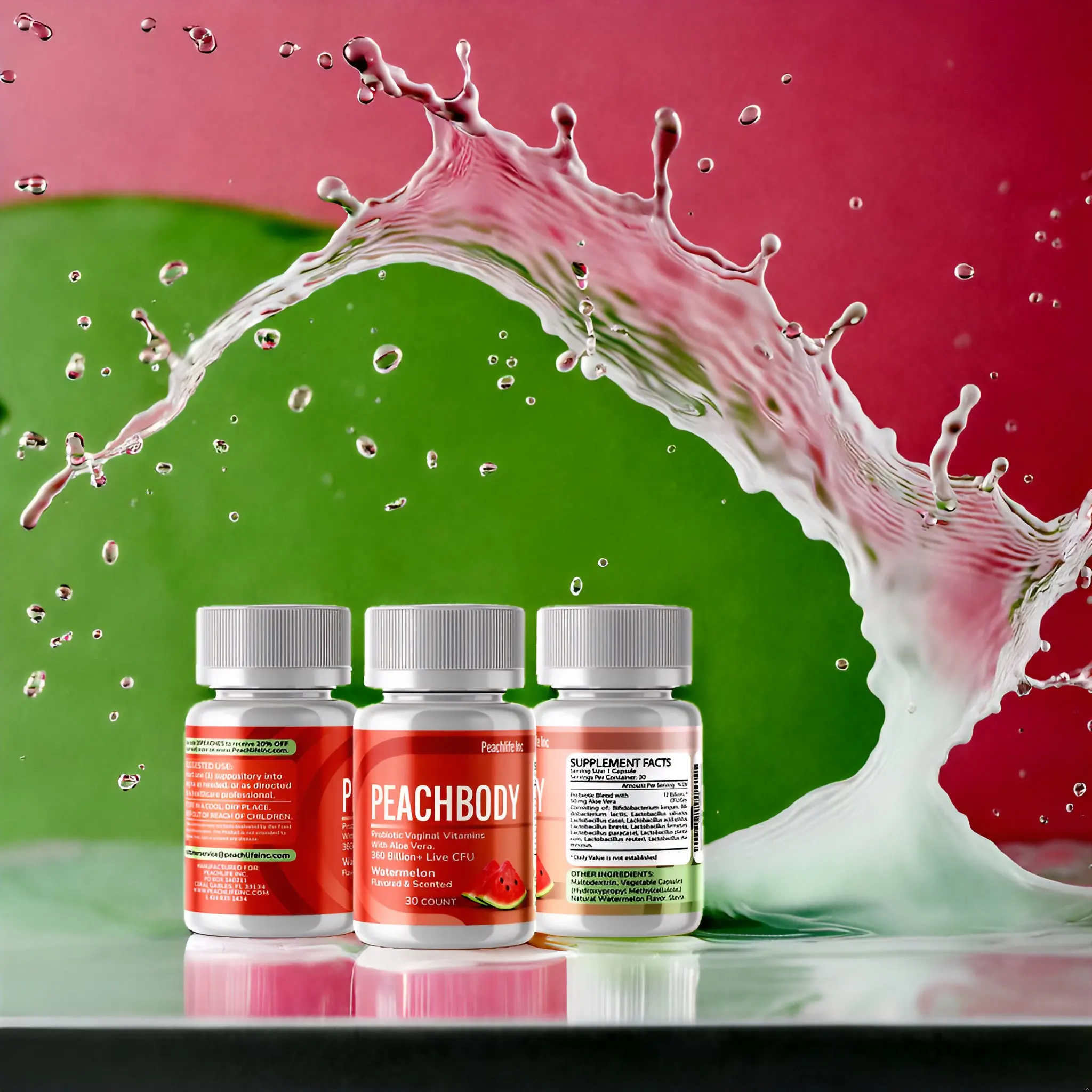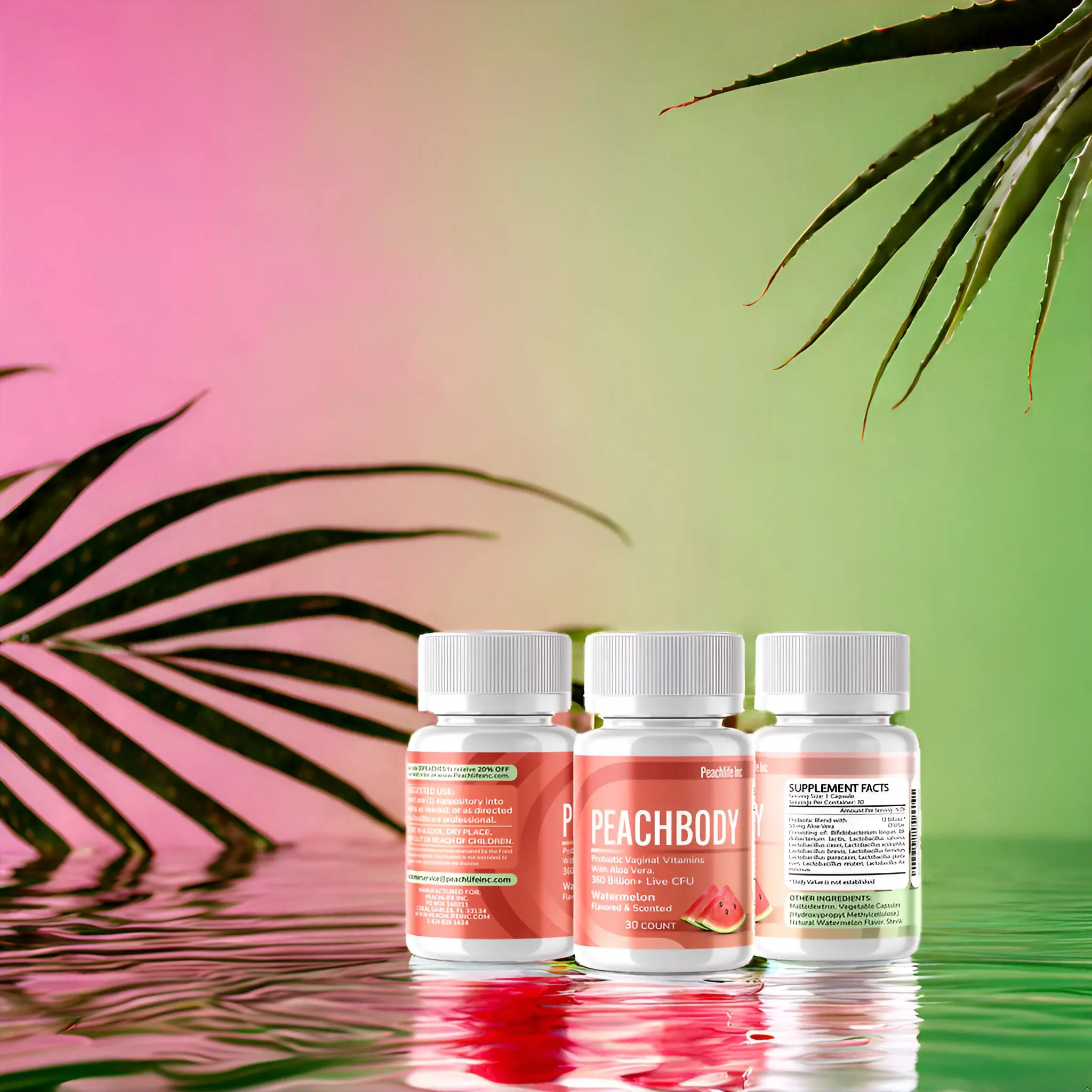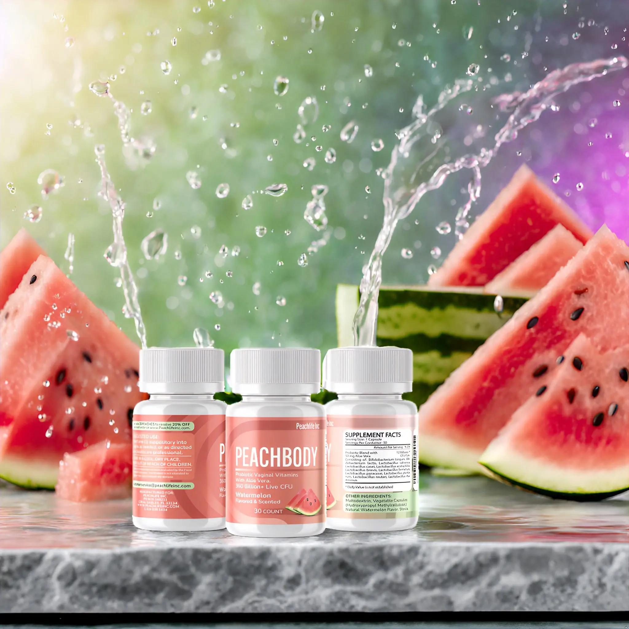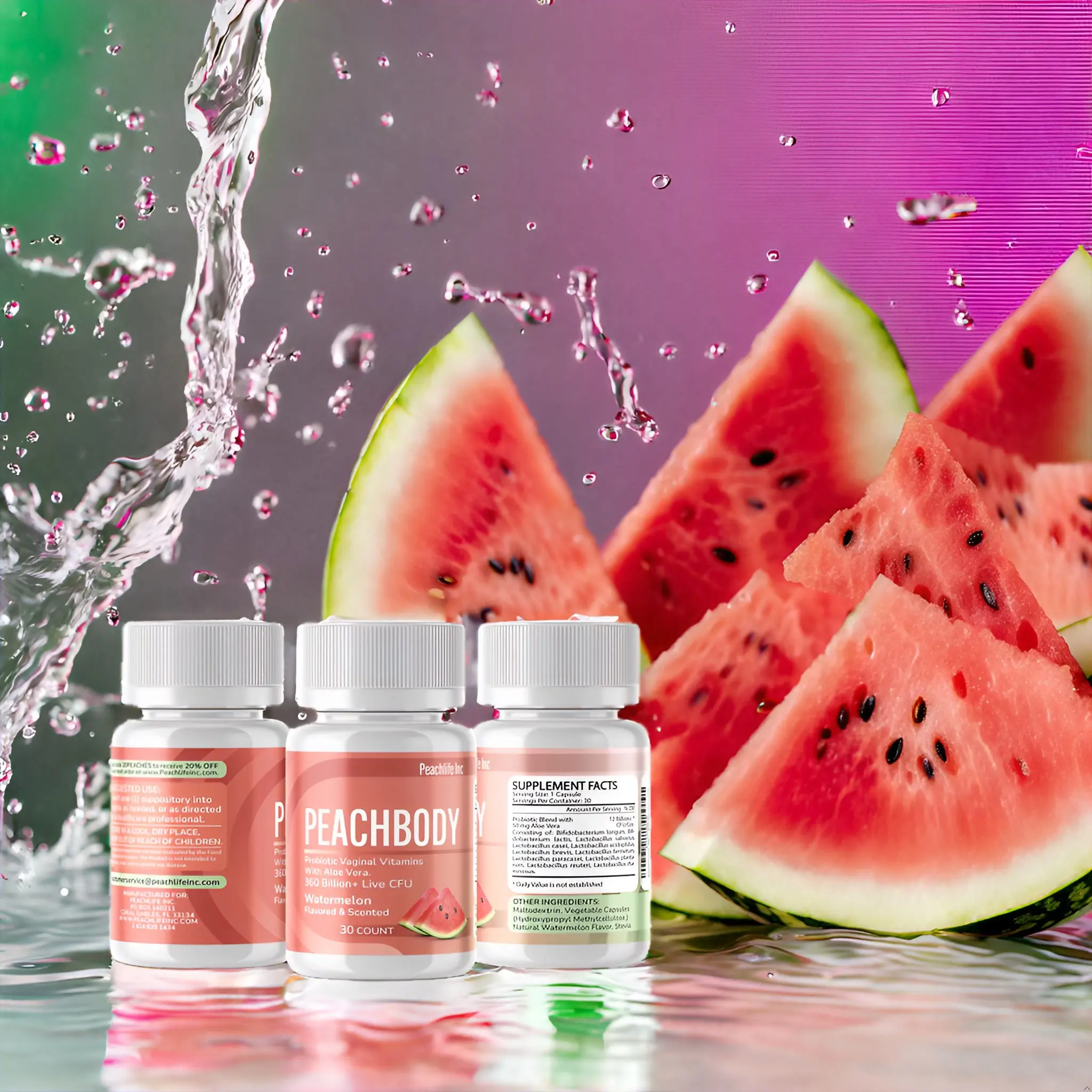 Elevate your intimate wellness with Peachlife’s Watermelon-Flavored Probiotic Vaginal Suppositories, enriched with soothing Aloe Vera for enhanced comfort. Formulated with 11 powerful probiotic strains, including Lactobacillus and Bifidobacterium, these vaginal suppositories are designed to help balance your vaginal pH and support overall feminine health. With 360 billion CFUs per bottle, they provide the potency you need to help promote a healthy vaginal environment, naturally.