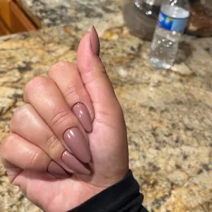 ·Mauve Wife: Medium almond press-on nails with a soft, muted mauve shade and a sleek glossy finish