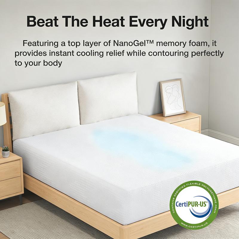 Cooling & Breathable - The memory foam mattress includes NanoGel memory foam and wave-cut foam, which increases breathability by 30%, promotes airflow and provides a refreshing cooling effect, thereby delivering an enhanced sleep experience. Enjoy all-night comfort and relaxation, say goodbye hot and restless nights.