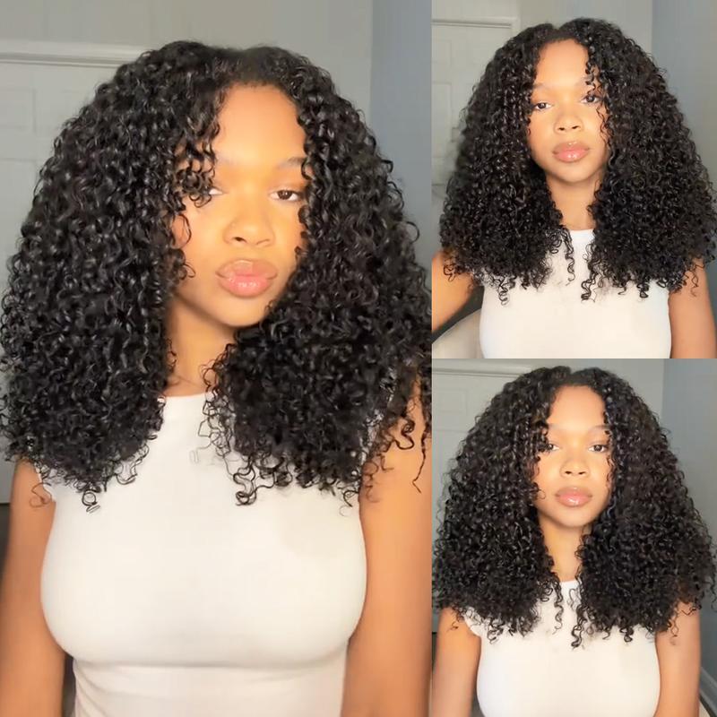 【3 IN 1 Half Wig】Glueless Kinky Curly Wigs Human hair 220% Density Headband Wig Upgrade