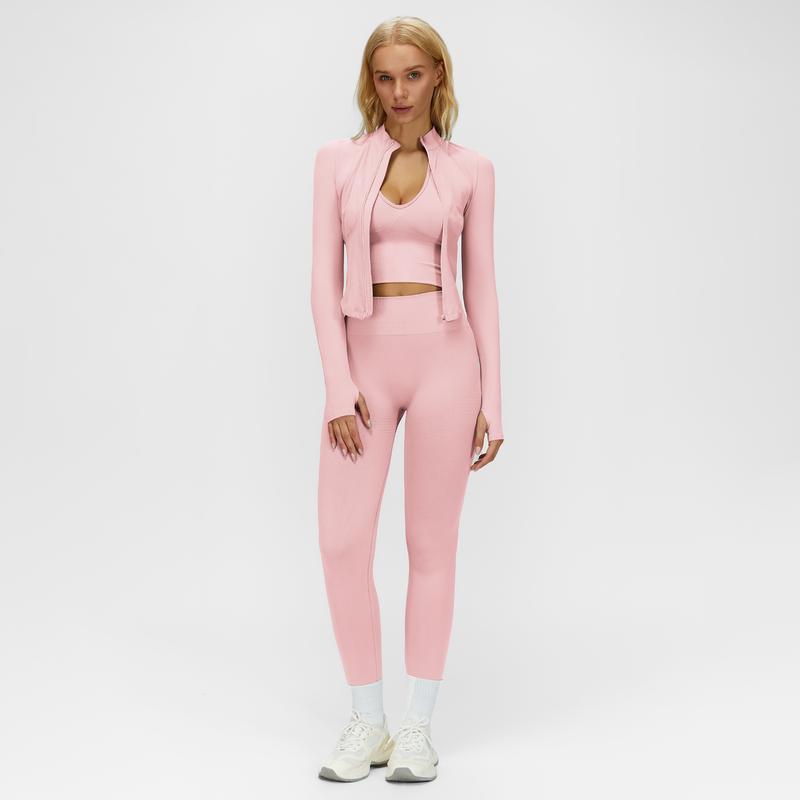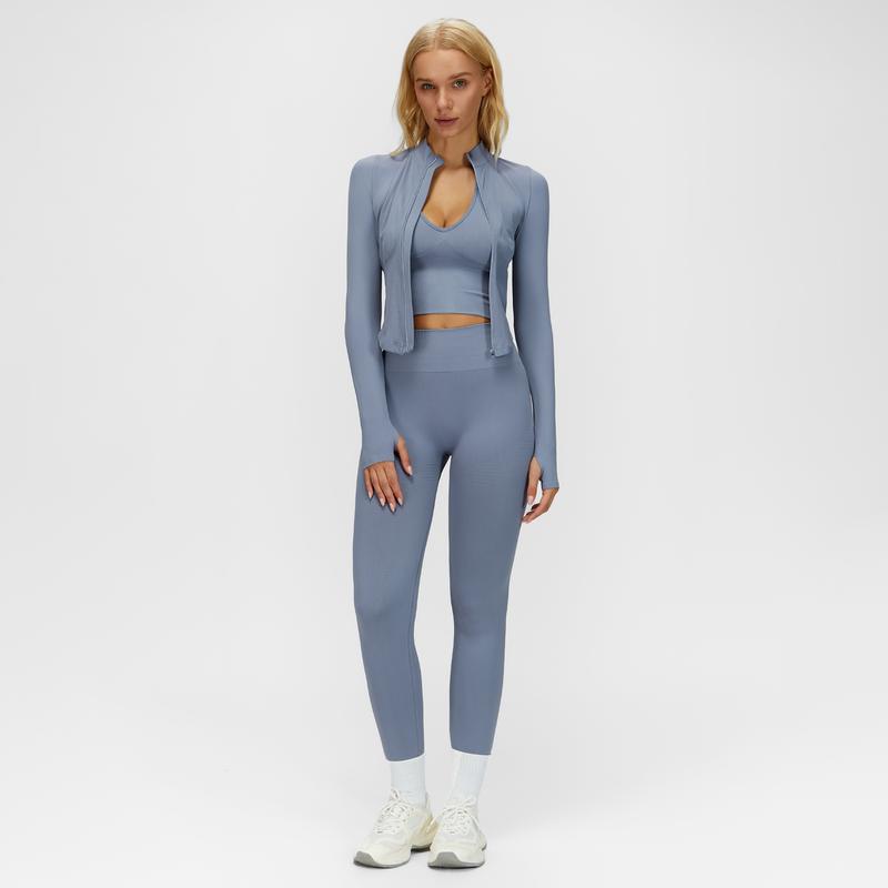 Absolutely the best three piece outfit. It’s super nice super comfortable and it’s very durable. I received so many compliments at the gym with this outfit. You can wear it in the gym or out and about. Definitely squat proof.