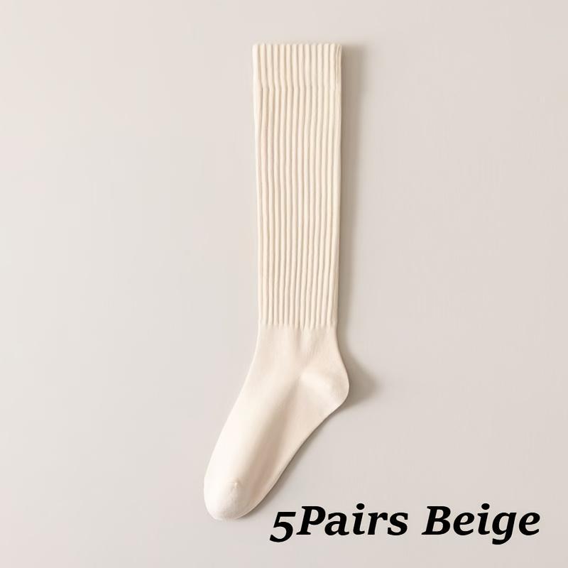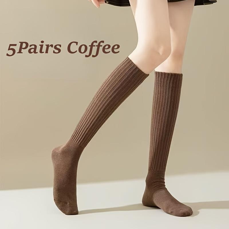 5. 5 Pairs Women's Warm Thick Calf Socks Slim Fit Solid Color Side Stripe Design Soft Stretchy Winter Socks for Boots Casual Wear