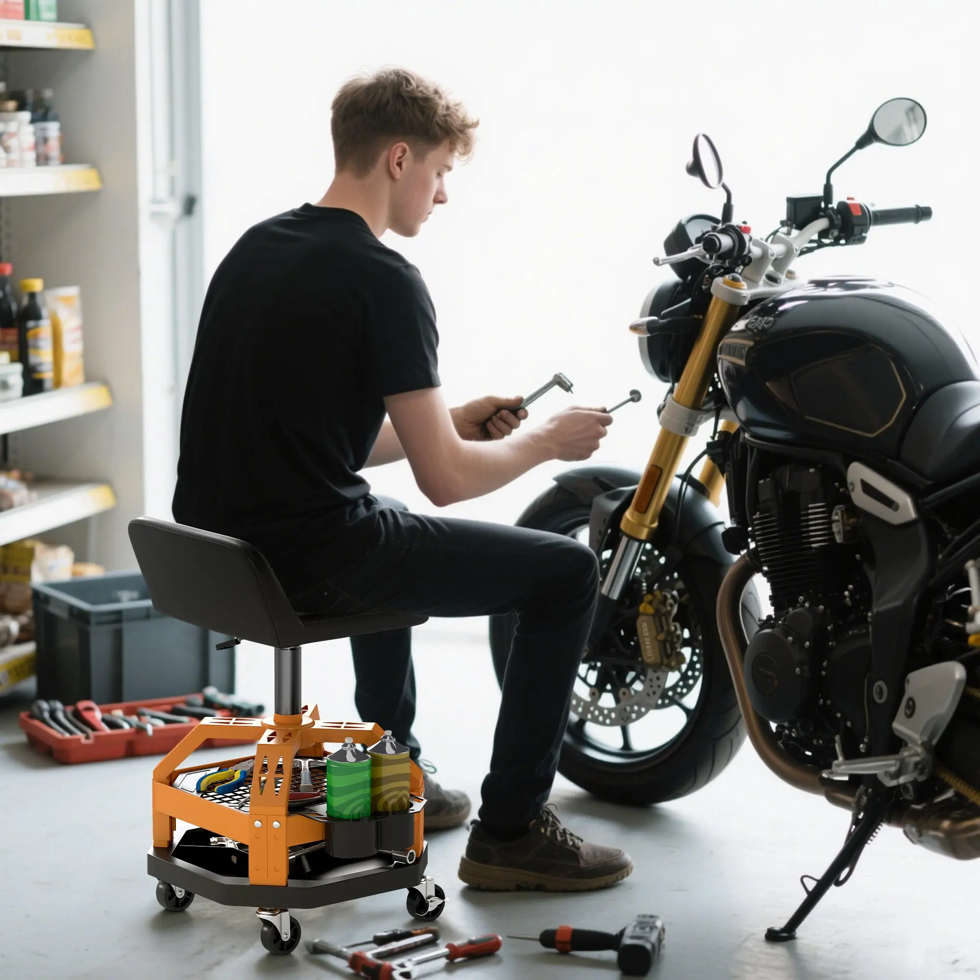 This stool is a must-have for any garage or workshop!