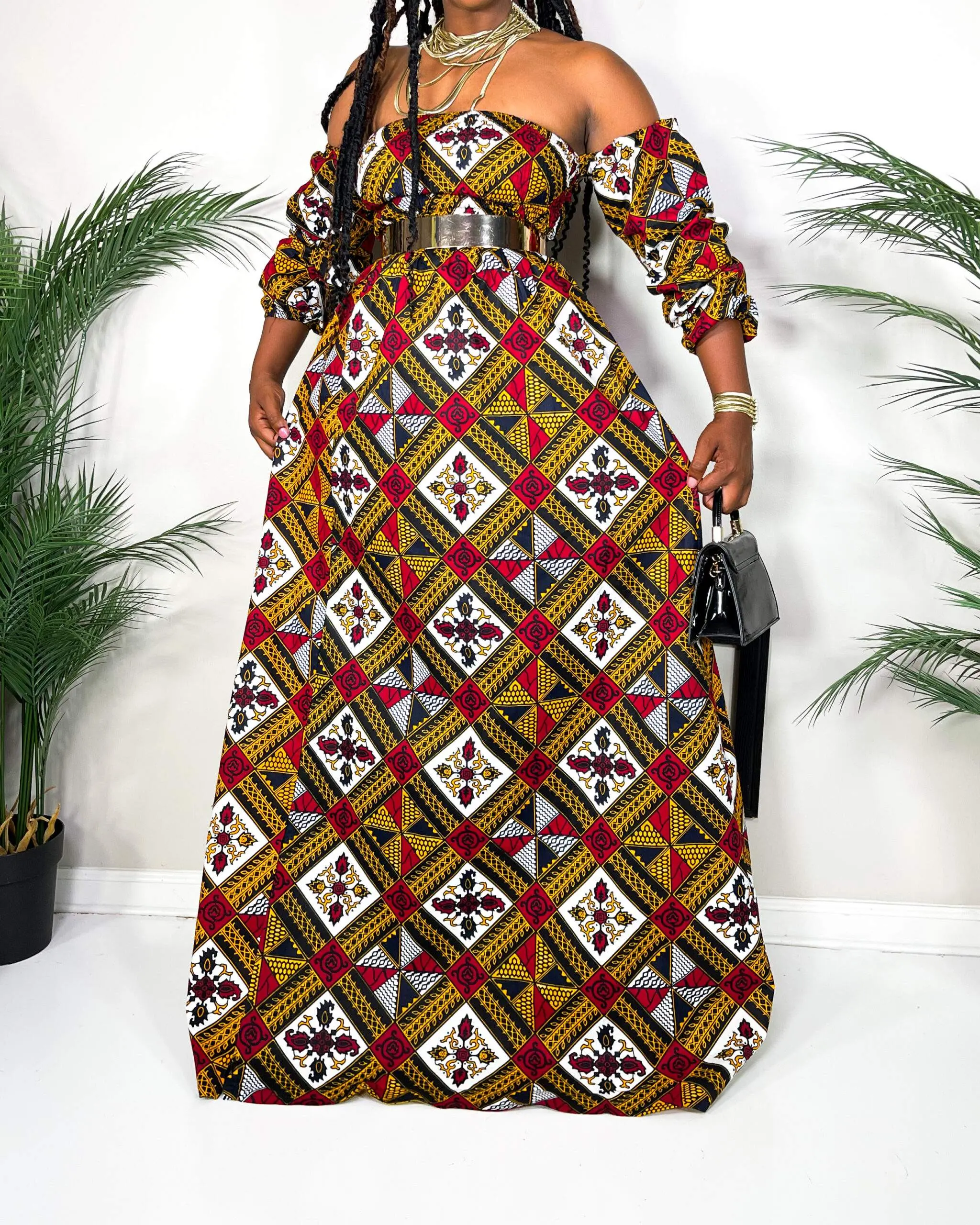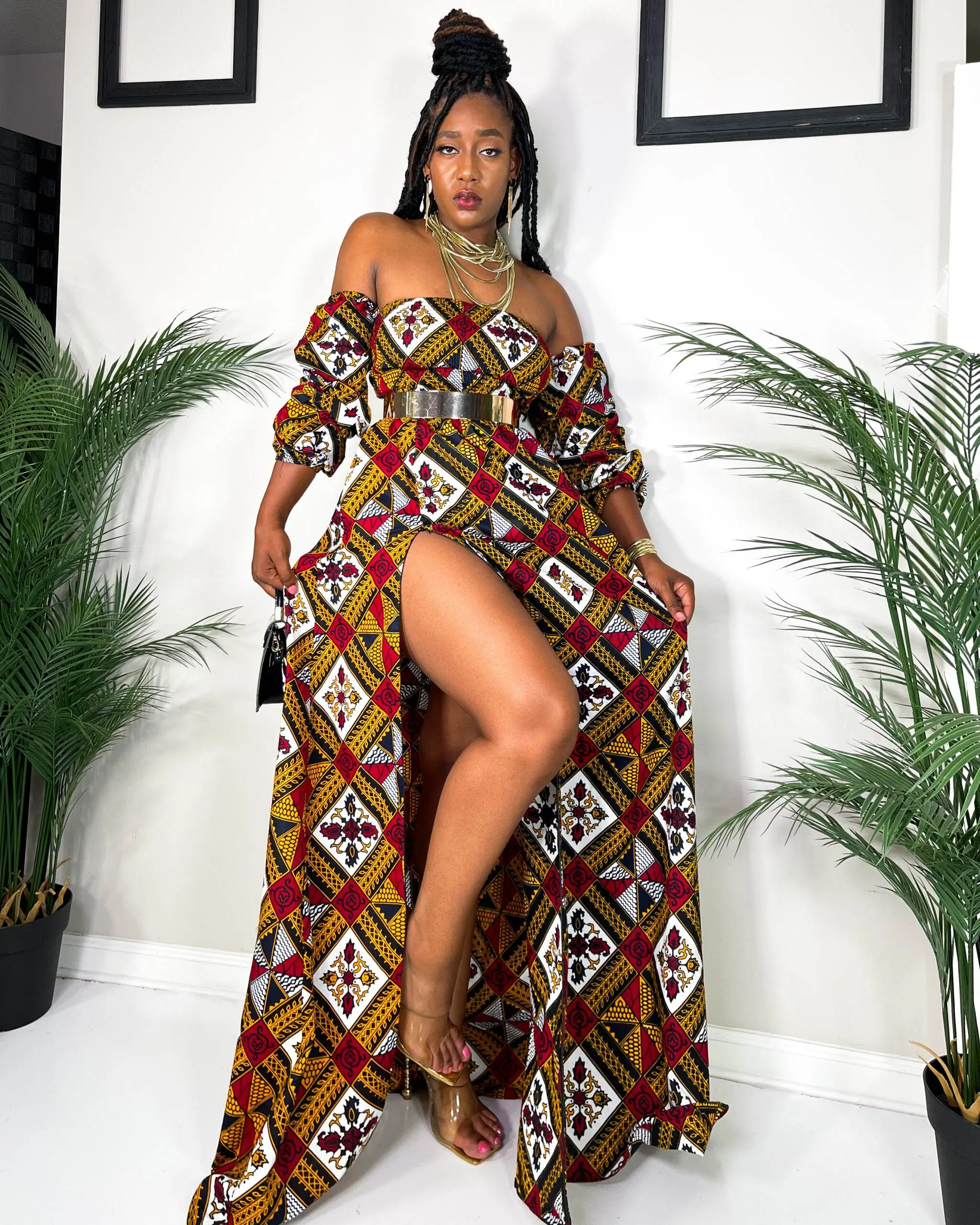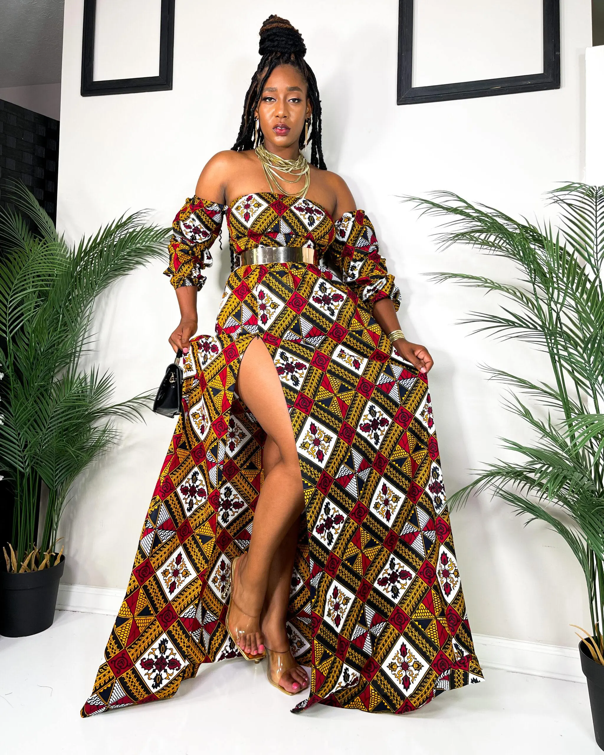 "Gbemi" Rema Kente Dress in Red Gold White and Black African Ankara Print