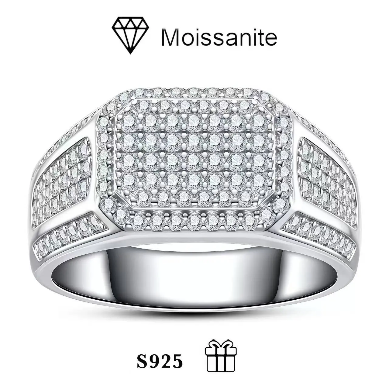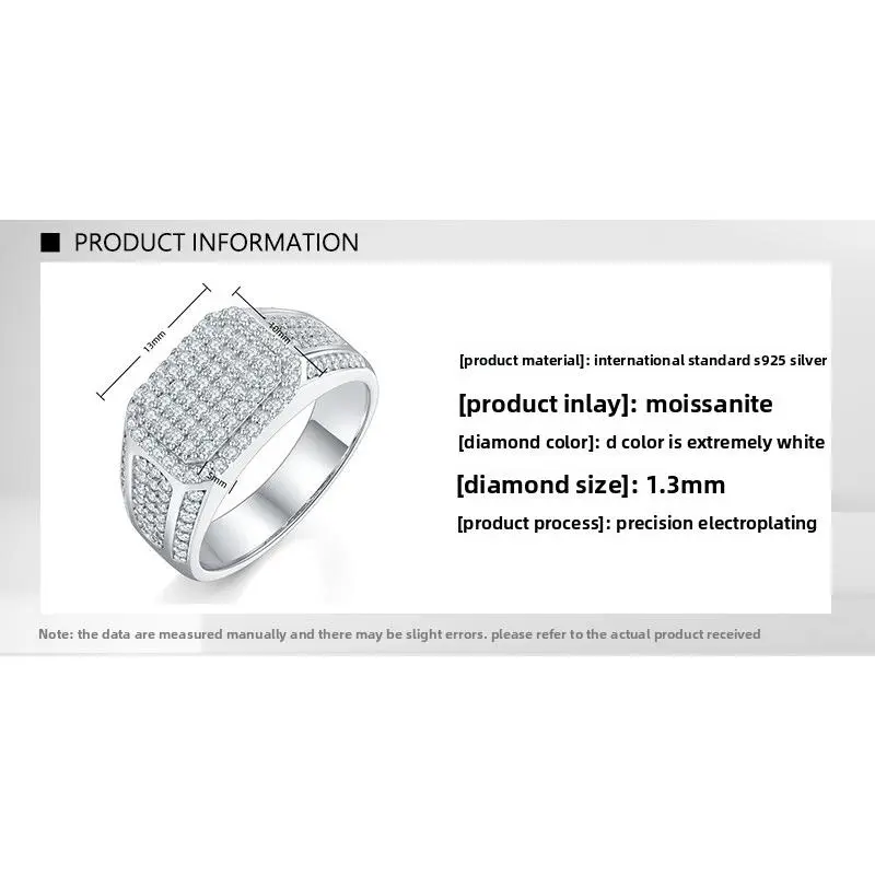 Hot Sale S925 Sterling Silver Ring Moissanite Two Carat Simulated Diamond Large Men's Ring Popular Style