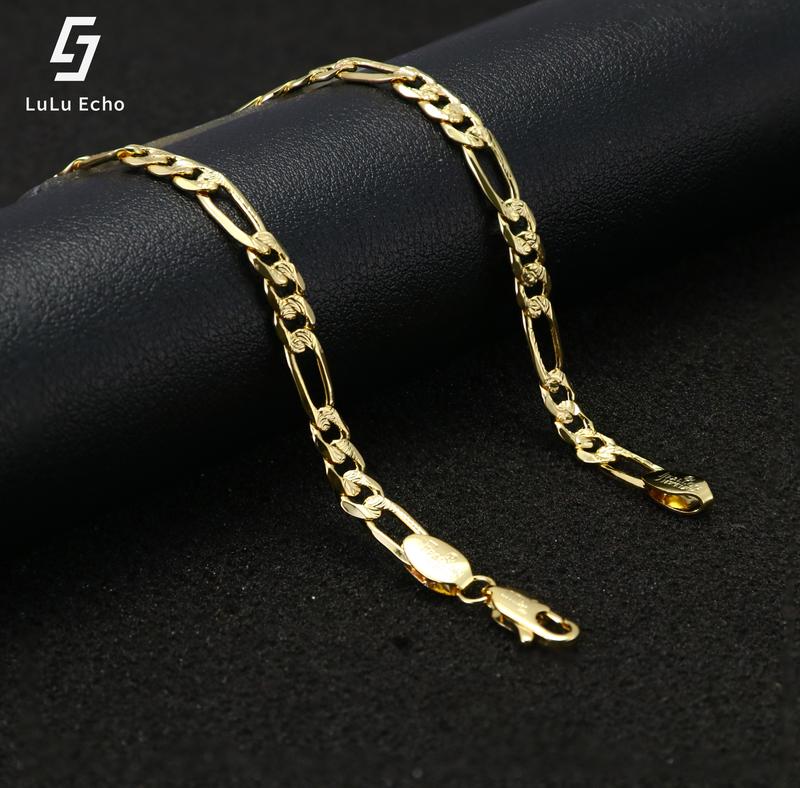 LuLuEcho 14K Gold-Plated Figaro Stamped Chain Bracelet Summer Jewelry Neutral Accessories Men and Women Layering Bracelets Craft Jewelry
