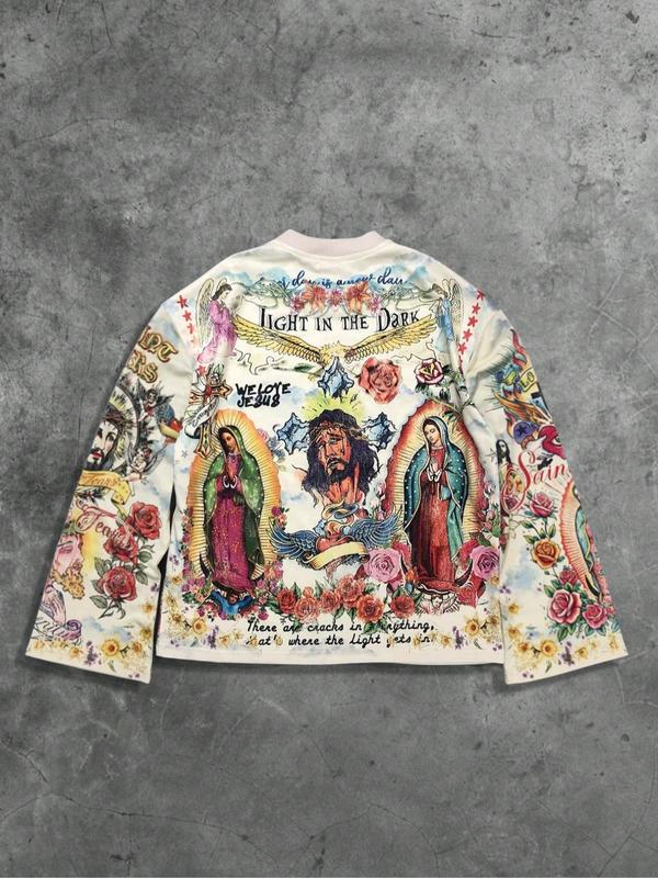 【Distinct Graphic】: Featuring a unique saint pattern print, this long sleeve tee sets itself apart in streetwear culture.