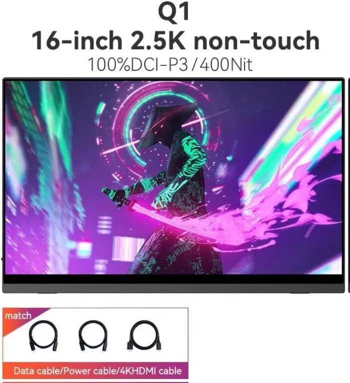 The EHOMEWEI Q1 16" IPS 2560*1600 Resolution Portable Monitor/Display offers a high-quality, versatile viewing experience with advanced features and easy connectivity. Perfect for remote work, gaming, and multimedia use.