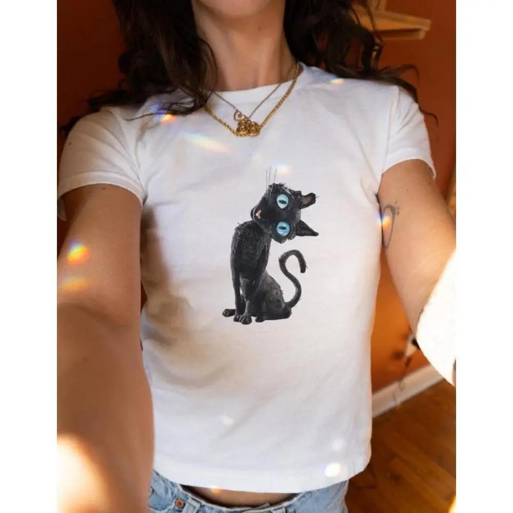 Coraline-Inspired Black Cat Women's Tee Vintage Movie Women's Shirt for Cat Lovers Crewneck Fabric (Please select the appropriate size according to the size chart)
