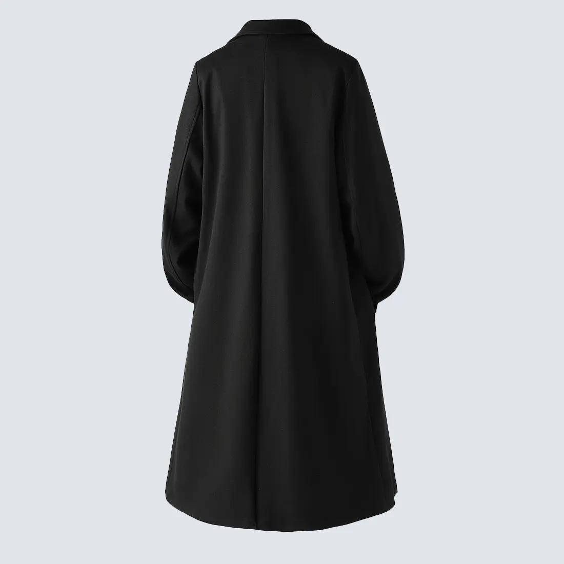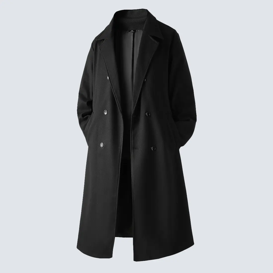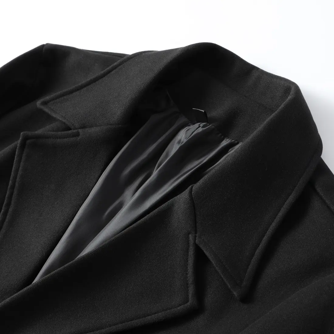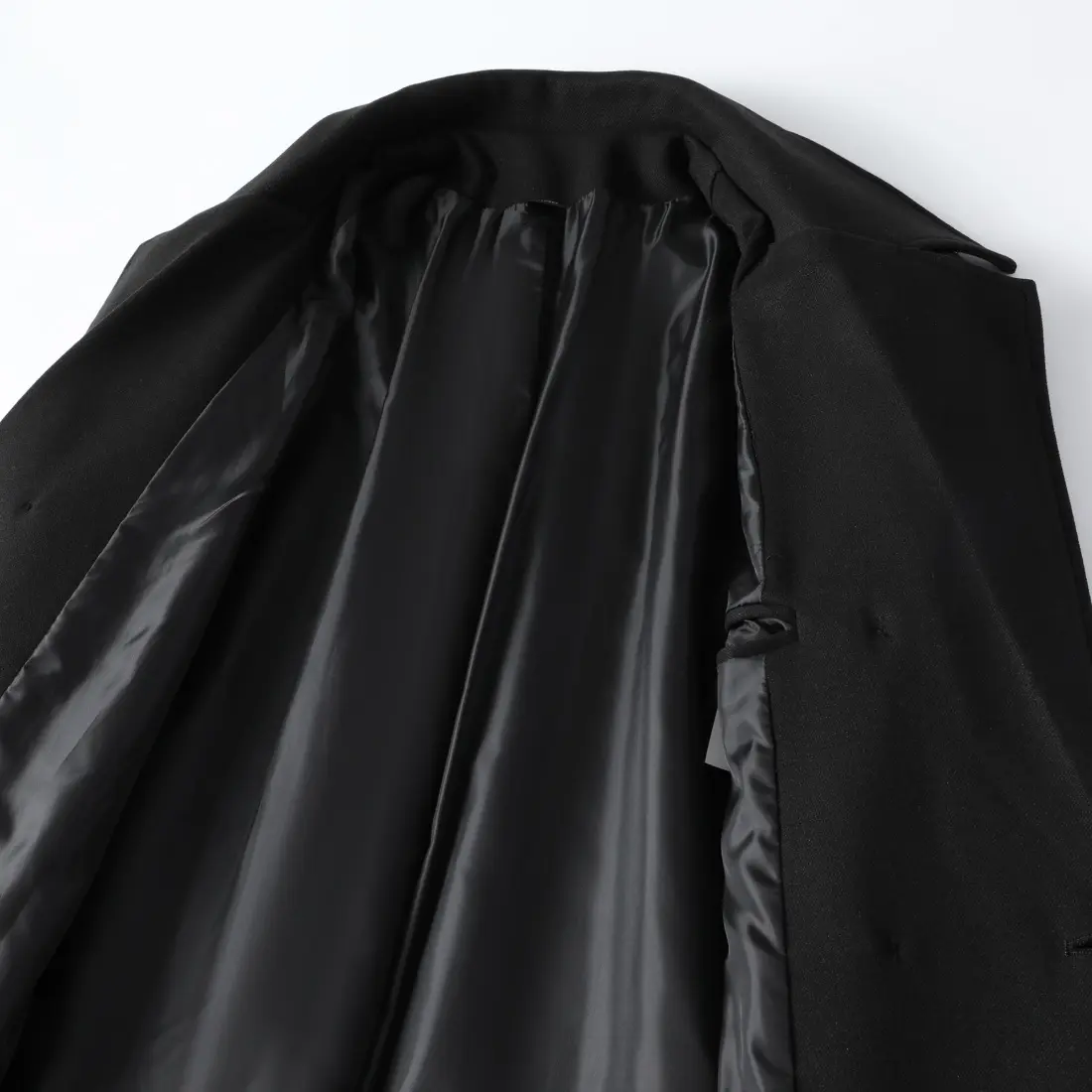 Men's Solid Color Long Double-Breasted Woolen Overcoat with Inner Pockets & Slanting Side Seam Design Formal Suit Collar Dress Jacket for Office Commuting Conference