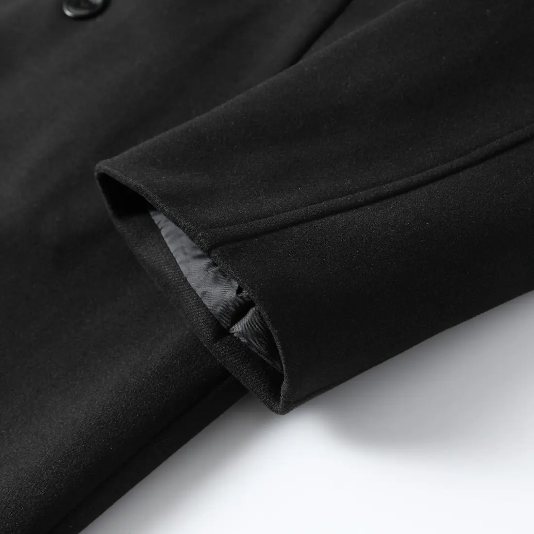 This men's solid color long woolen coat with double-breasted buttons is perfect for formal occasions.Built-in pocket with diagonal side seam design.Add a touch of sophistication with a formal collar.Perfect for office commutes and meetings, this dress jacket allows you to present a professional image.