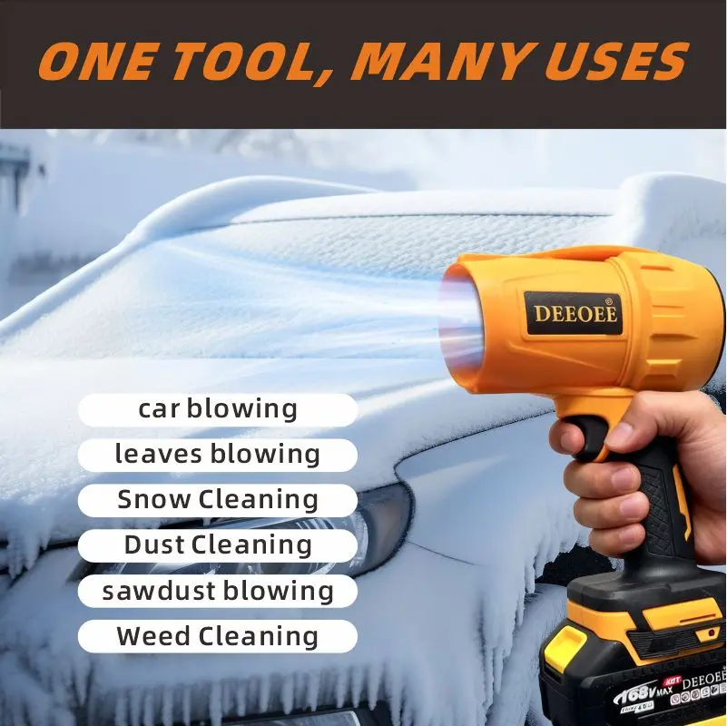 【Powerful turbine technology】: Provides 500g/1000g pressure excellent airflow, quickly removes leaves, dust and debris, and improves cleaning efficiency.The data is based on laboratory testing, with the maximum wind force measured 5cm from the product outlet (500g/1000g)【Cleaning multi-purpose】: fallen leaves and dust removal, outdoor barbecue, easy cleaning of front and back yards and cars, dry surface car water stains, remove snow【Lightweight and portable】: weighs only a few pounds, adopts wireless battery design, easy to operate and carry, suitable for long-term use.【Warm Tips】: For safety and service life, please fully charge before first use, wait 5-10 minutes after use before charging to prevent overheating. Long-term pressing will cause the machine to overheat and trigger the battery protection mechanism. Wait 5-10 minutes before use. If you don't use it for a long time, keep the battery fully charged and charge it very 3-6 months to keep it in the best condition.【Noise Tips】: The product noise is 75-85dB, please wear earplugs or use it in an open space【Product explanation】: The effect of the product may be affected by subjective factors (height/environment/battery power), and the effect of use may be affected by distance, temperature, power, etc., so there will be a certain degree of subjective difference. However, the product is very effective in cleaning fallen leaves and dust, so please feel free to use it.
