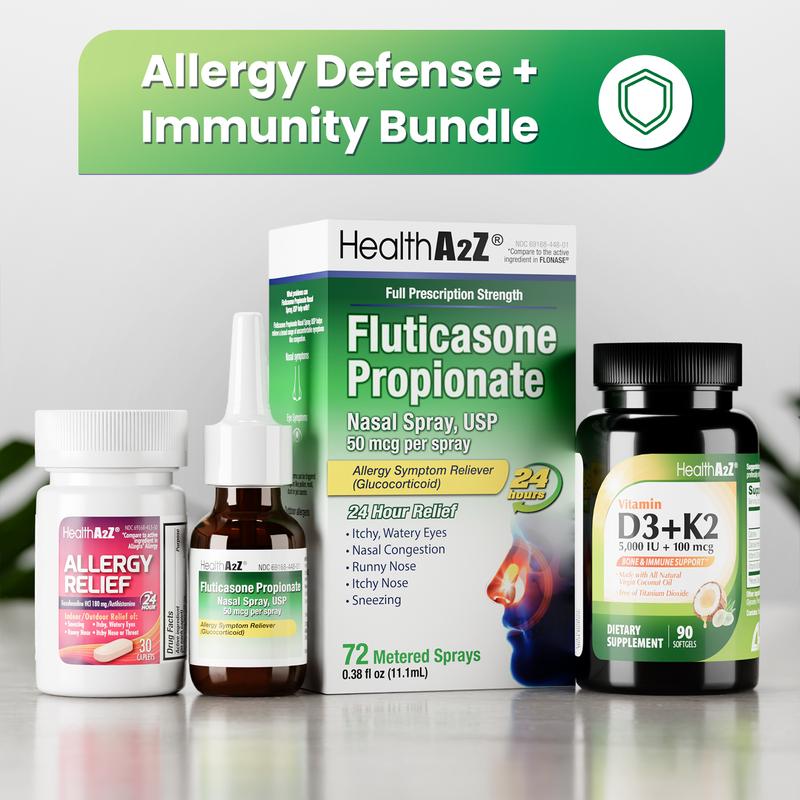 This bundle pairs two proven 24-hour allergy relievers with Vitamin D3+K2 (Coconut Oil) to help you stay comfortable and steady through changing seasons.