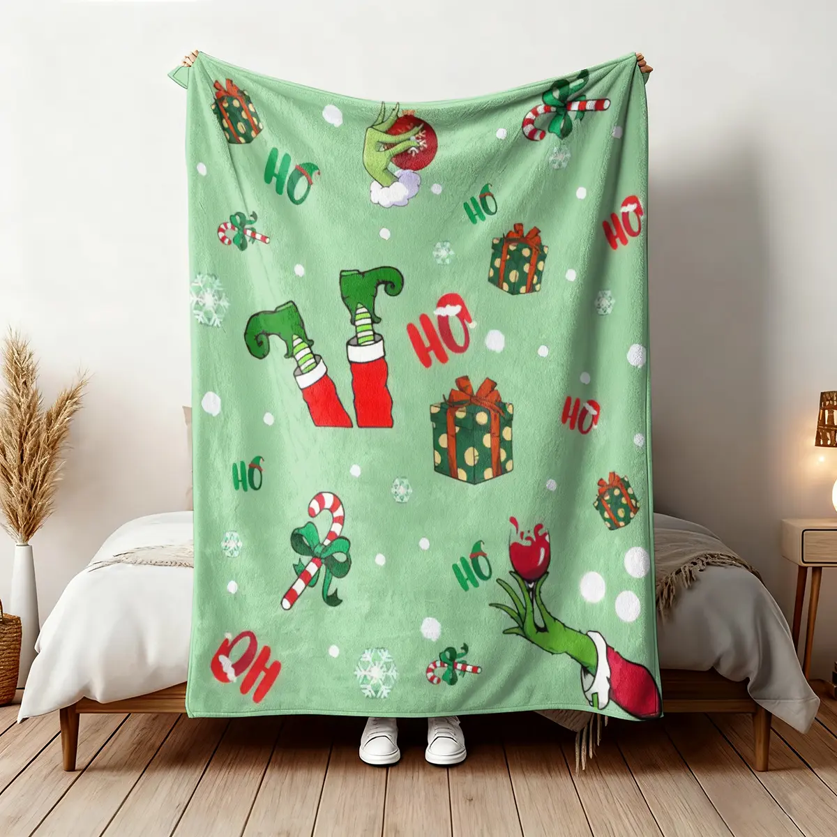 【Festive Theme】: Featuring a Christmas Grinch theme, this blanket adds a cheerful holiday spirit to your home decor.
