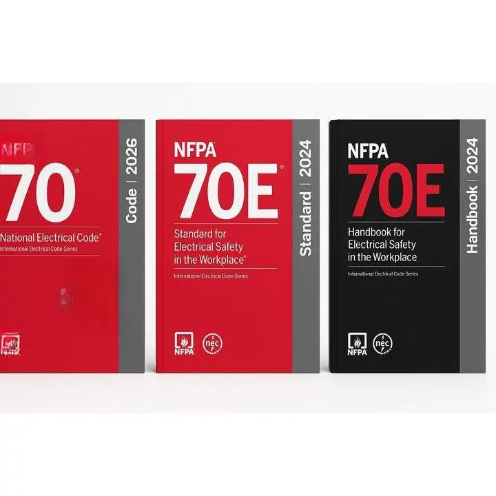 ·NFPA 70E Codebook (2024 Edition): Covers electrical safety, arc flash boundaries, PPE, and risk assessments.