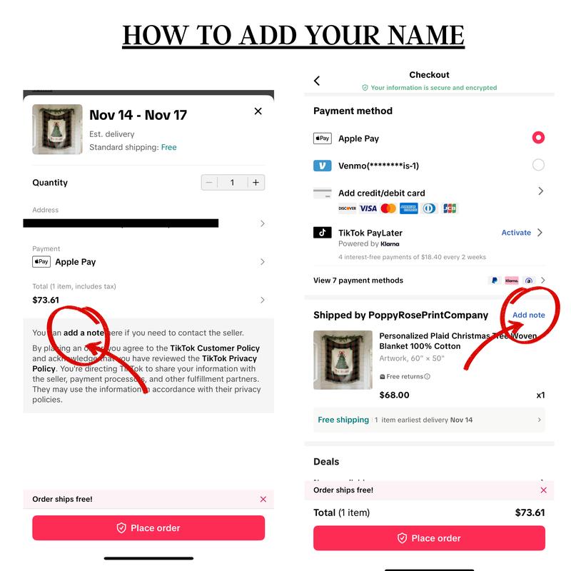 **LEAVE THE NAME YOU WOULD LIKE IN THE NOTES SECTION ON THE CHECKOUT PAGE". There is "add notes" written in blue next to the product image on the checkout page. See product pictures for example.