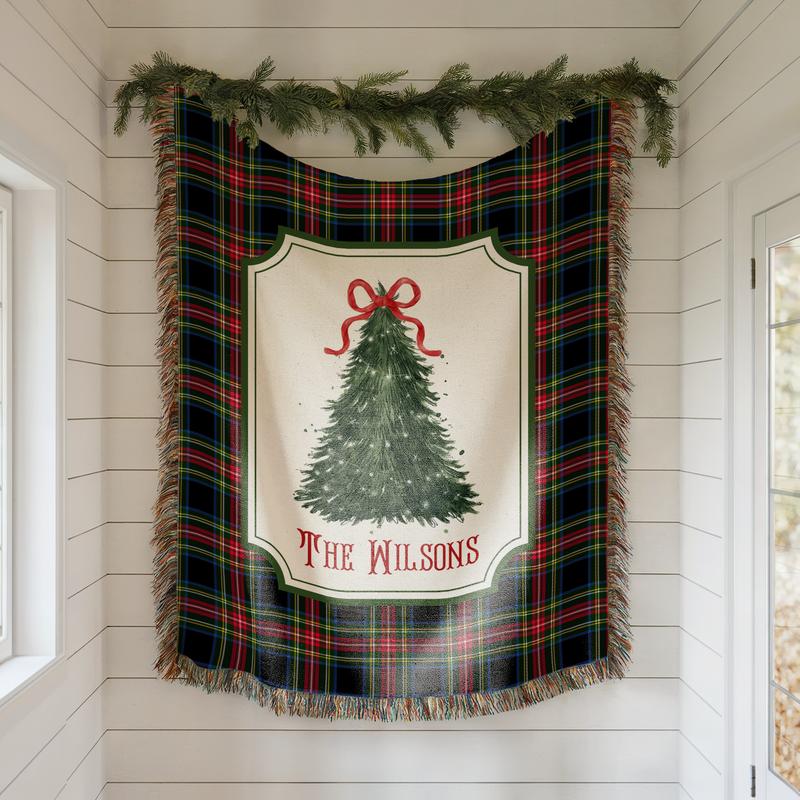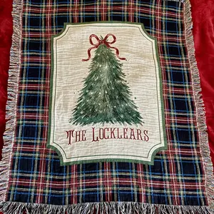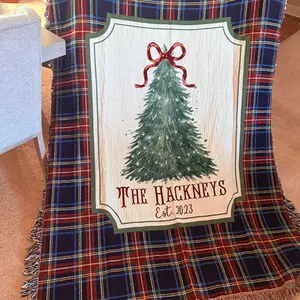 Wrap your loved ones in warmth and tradition with our 100% cotton woven Christmas blanket, beautifully crafted to celebrate the magic of the season. Each blanket is personalized with your family name, making it a truly one-of-a-kind addition to your holiday décor.