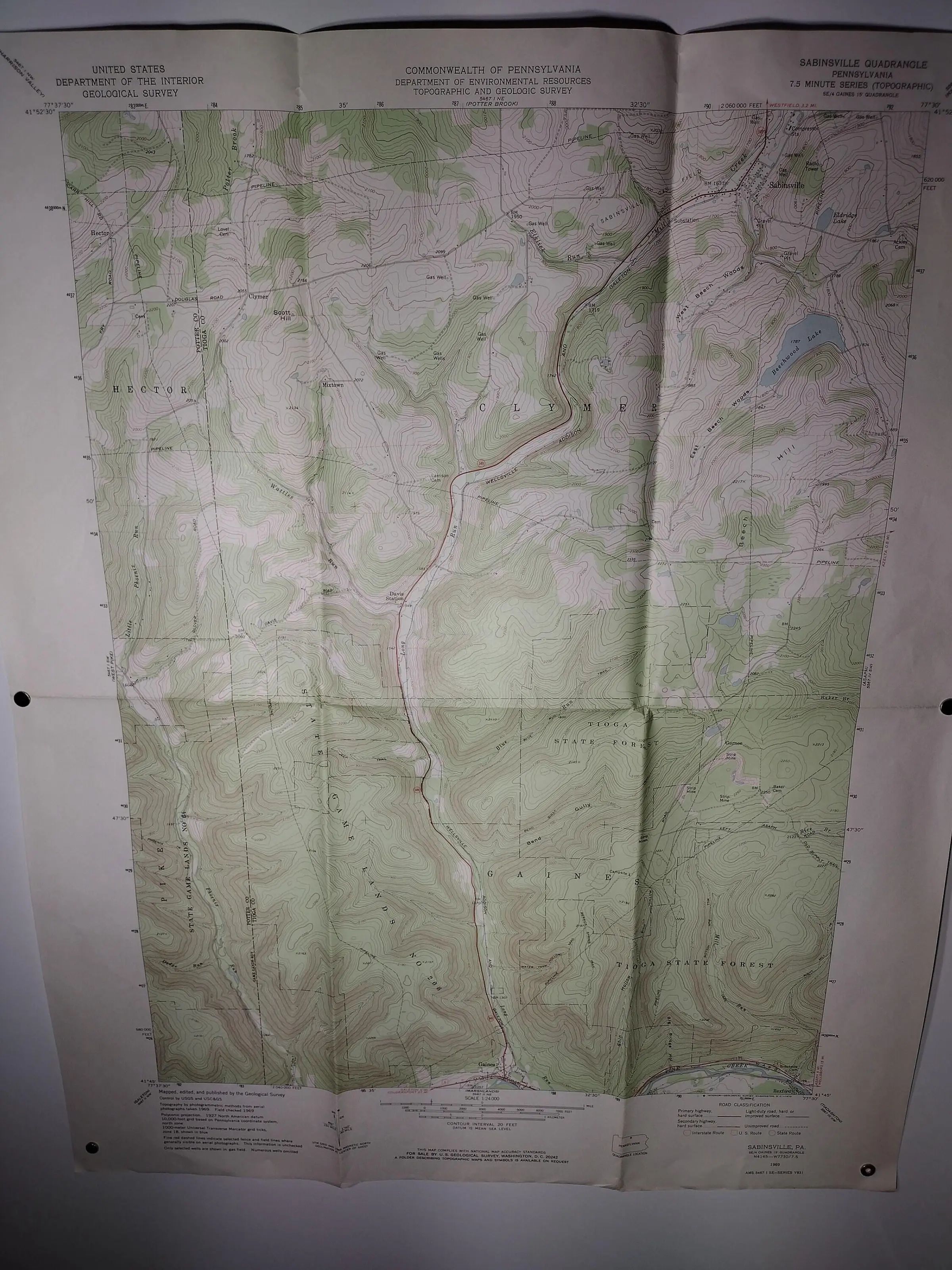 An awesome topographical map of Sabinsville, Pennsylvania area done by the US Department of the Interior! made in 1969. FREE US SHIPPING!