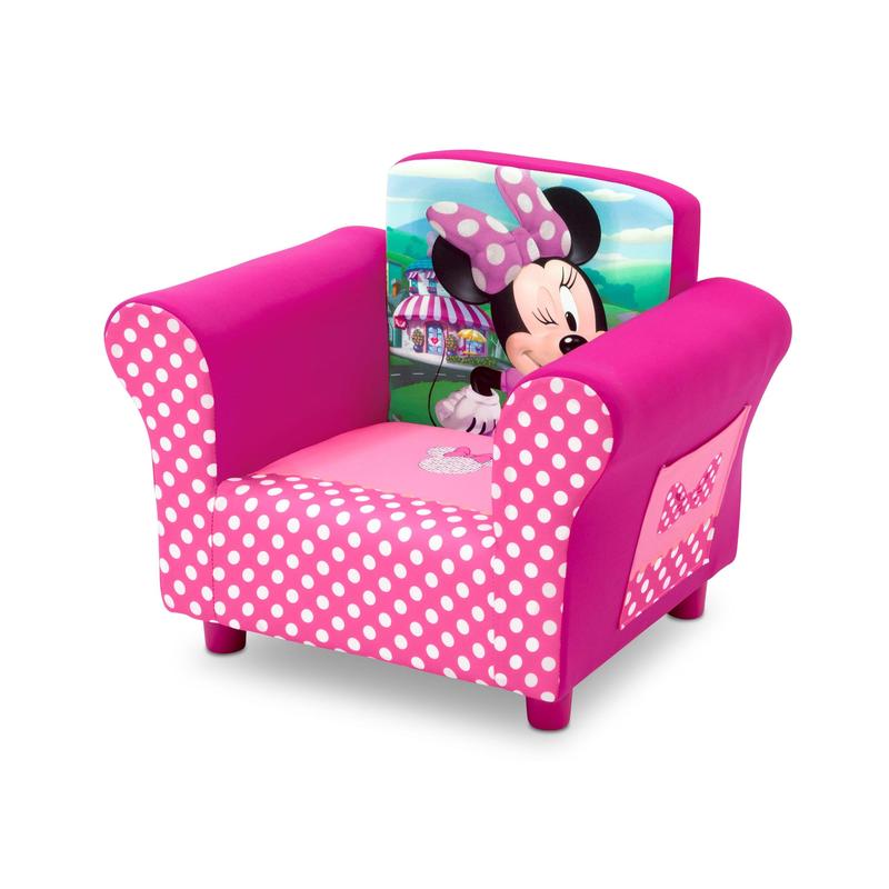 She'll love to snuggle up in this Disney Minnie Mouse Upholstered Chair from Delta Children! A cozy toddler chair, it features a durable wood frame, plush foam padding, storage pockets on both sides, and adorable graphics of every girl’s favorite mouse, Minnie. The perfect kids-only spot for reading, watching movies or just relaxing, it makes any activity extra special.