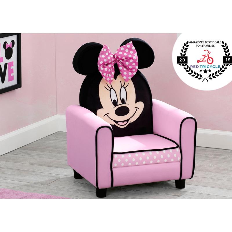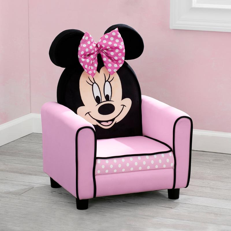 Transform her space into the cutest Clubhouse with this Disney Minnie Mouse Figural Upholstered Kids Chair from Delta Children. Designed to resemble Disney’s original sweetheart, this cozy chair for kids features plush fabrics, detailed graphics and Minnie’s signature ears and bow. The chair’s timeless design makes it an EAR-ssential for your Mouseketeer’s bedroom or playroom.