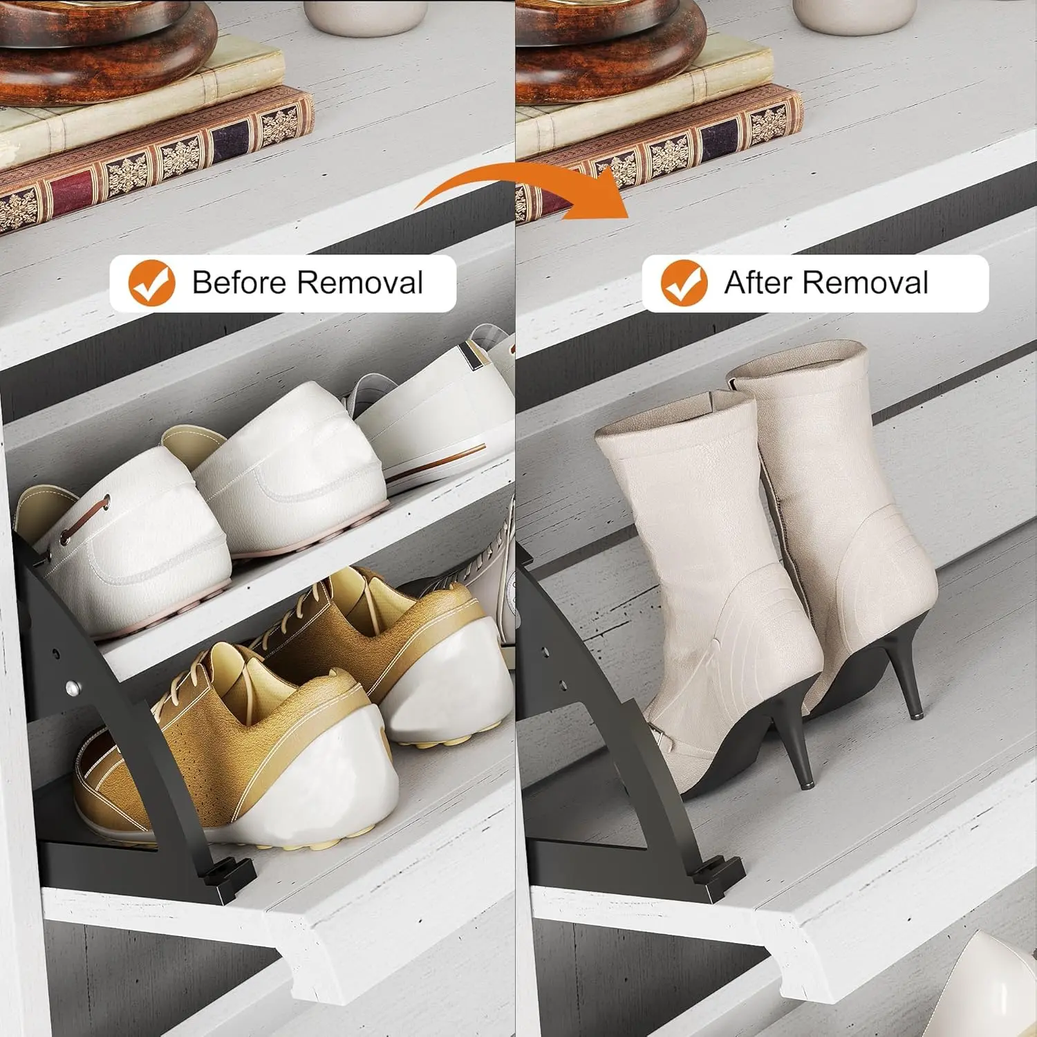 ·CHIC DESIGN: Featuring a space-saving flip drawer design, this hidden shoe rack offers effortless opening and closing. The back of the cabinet is equipped with an anti-tipping device, allowing it to be securely anchored to the wall and alleviating concerns about accidental tip-overs caused by children and pets