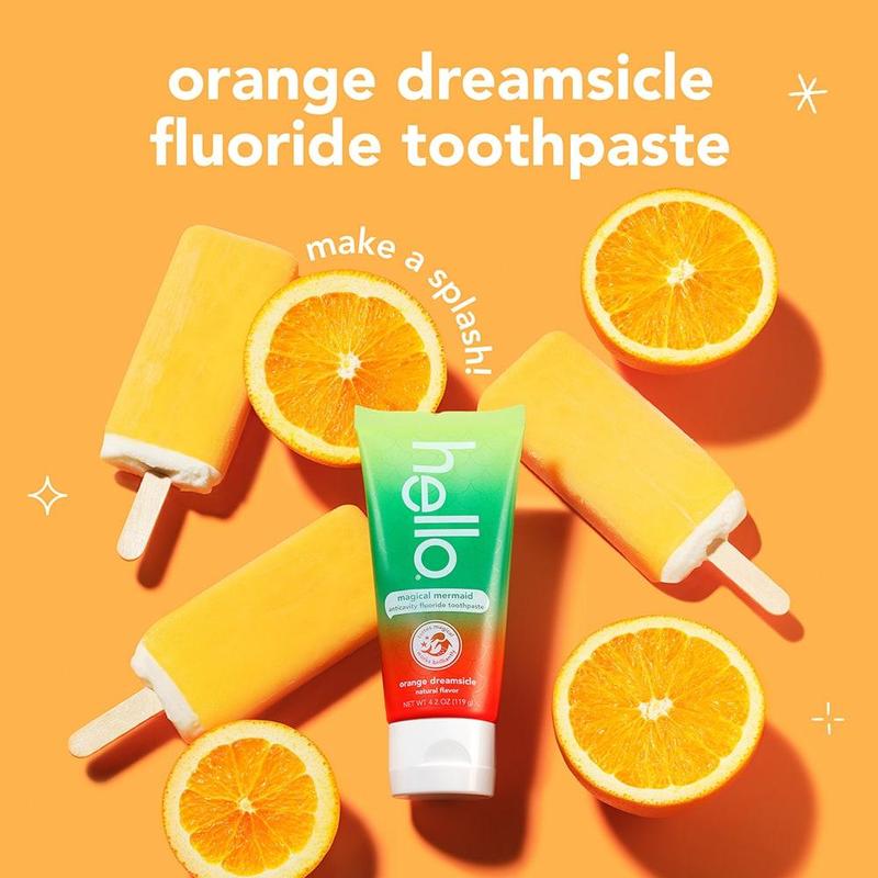 Say goodbye to brush time negotiations and hello to everyday yay with Hello Kids Magical Mermaid fluoride toothpaste. This toothpaste is safe for kids ages 2 and up, featuring an orange dreamsicle flavor that makes brushing fun. 🍊