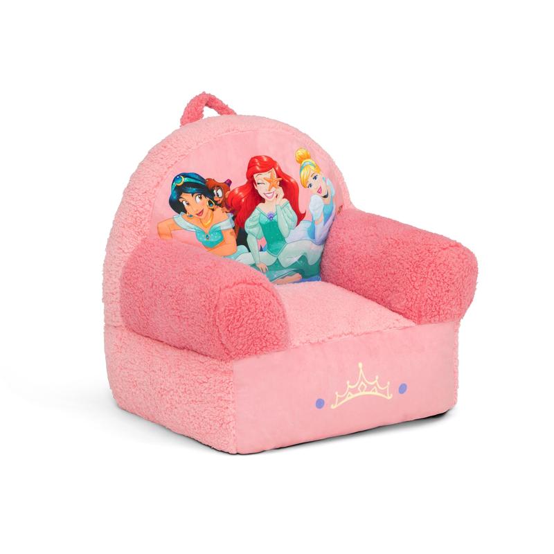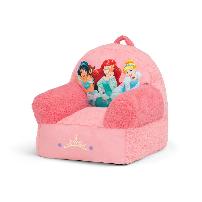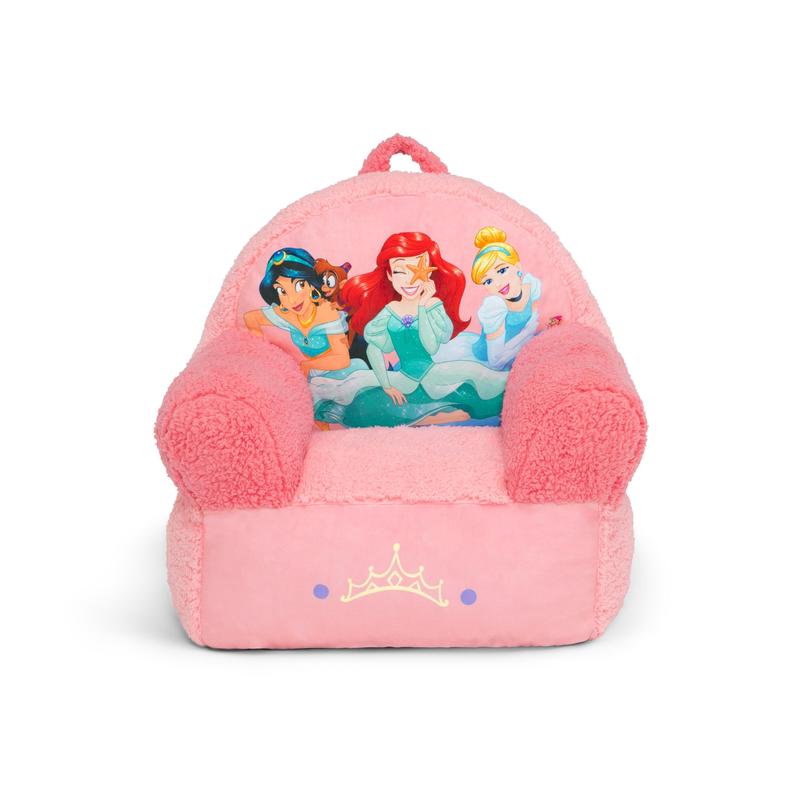 Kids can snuggle up with their favorite character with the Disney Princess Cozee Buddy Chair by Delta Children! This plush chair features colorful Disney Princess graphics of Ariel, Jasmine and Cinderella, super-soft fabric and a handle that makes it easy to move around the house! The foam design of this comfy chair offers kids a cozy companion for reading, relaxing or snuggling, making it perfect for playrooms and kids’ bedrooms.