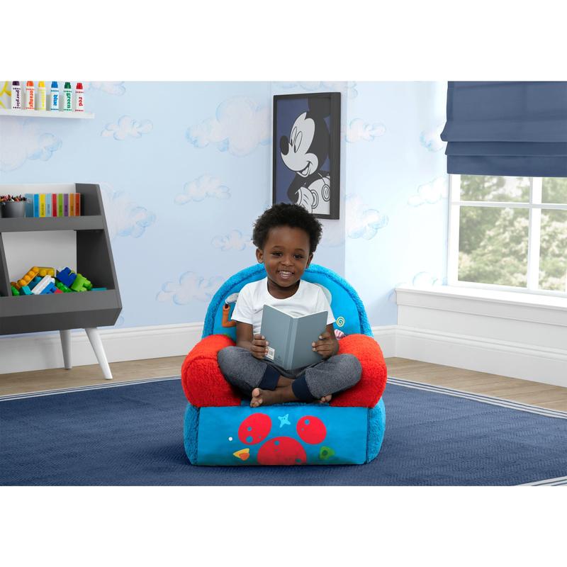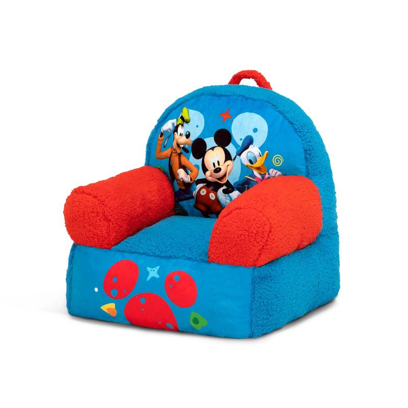 Kids can snuggle up with their favorite character with the Disney Mickey Mouse Cozee Buddy Chair by Delta Children! This plush chair features colorful Mickey Mouse graphics, super-soft fabric and a handle that makes it easy to move around the house! The foam design of this comfy chair offers kids a cozy companion for reading, relaxing or snuggling, making it perfect for playrooms and kids’ bedrooms.