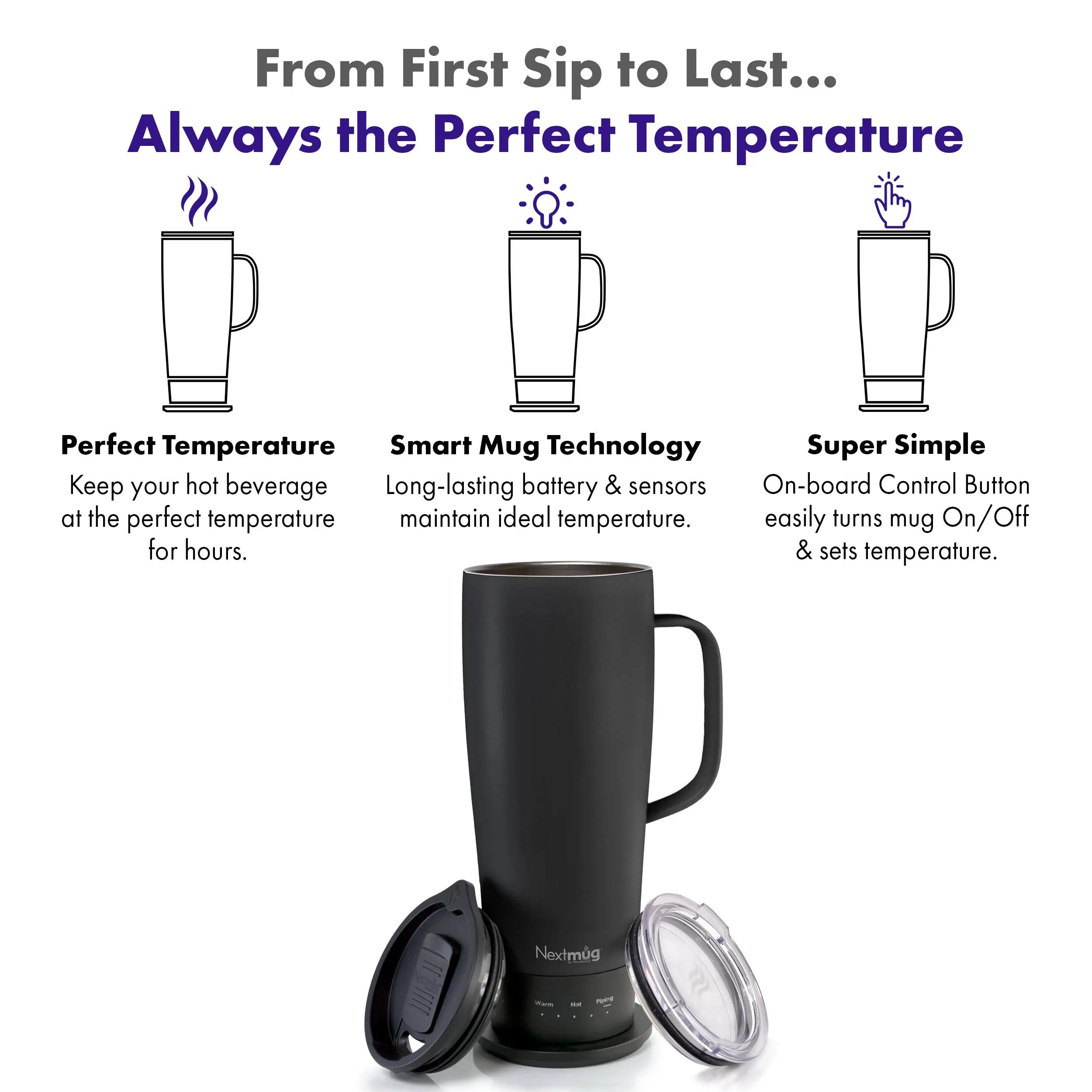 Nextmug Plus (18 oz.) - Temperature-Controlled, Self-Heating Coffee Mug