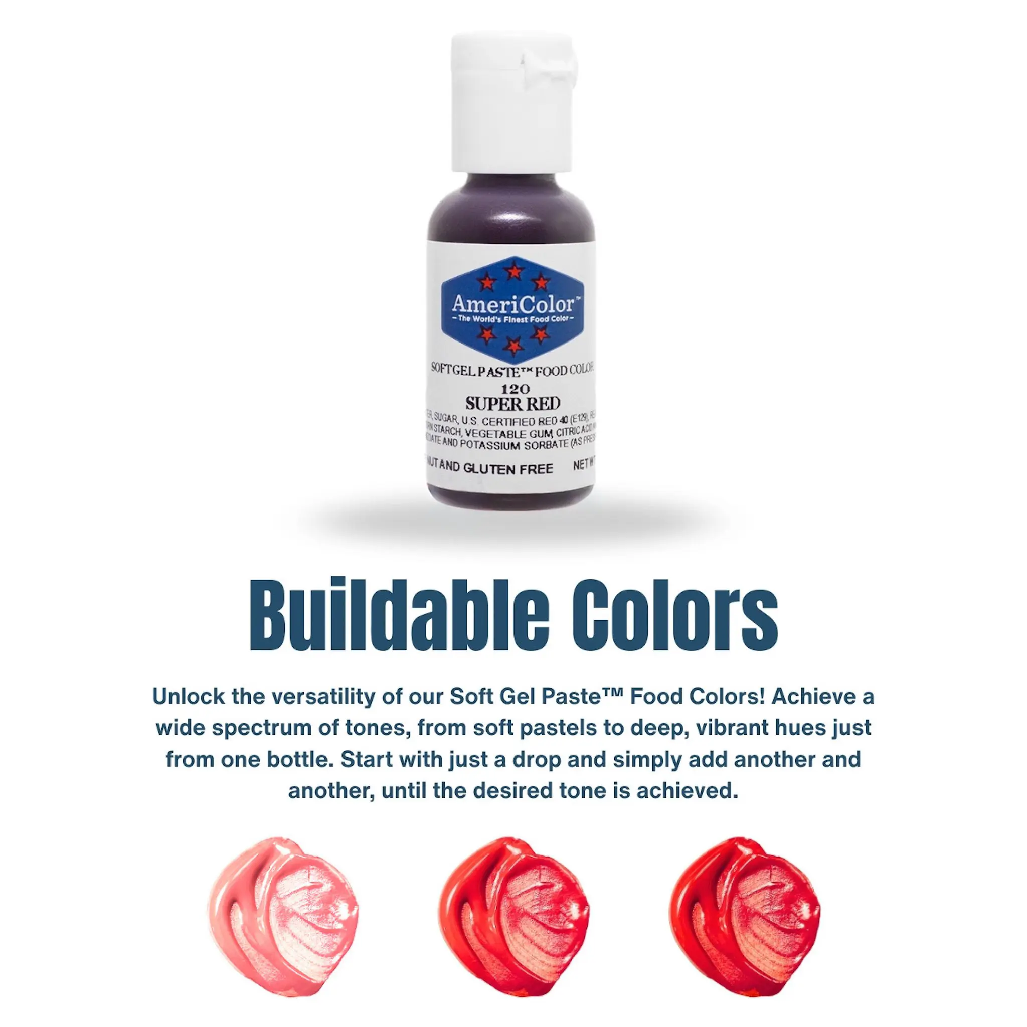 AmeriColor Soft Gel Paste turns ordinary bakes into show-stopping creations. Trusted by top bakers, cookie artists, and cake designers worldwide. This listing features Super Red Soft Gel Paste .75 oz which is also available in 4.5 oz, and 13.5 oz sizes via our TikTok shop. Part of our world-renowned professional-grade colors.