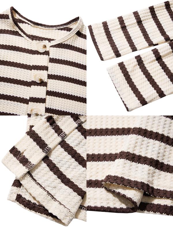 Aliling Elegant Two-Piece Dress Set for Women, Striped Knit Midi Skirt & Button-Front Top, Casual Fall & Winter, Party Wear