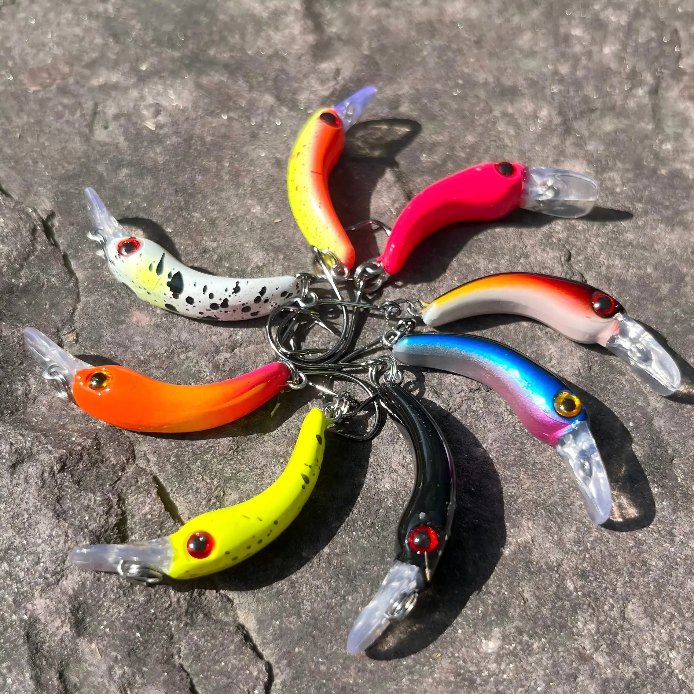 ·8pcs Micro Floating Minnow Lures: Each lure measures 1.57 inches and weighs 1.4g. Perfect for trout, pike, and bass fishing. 🐟