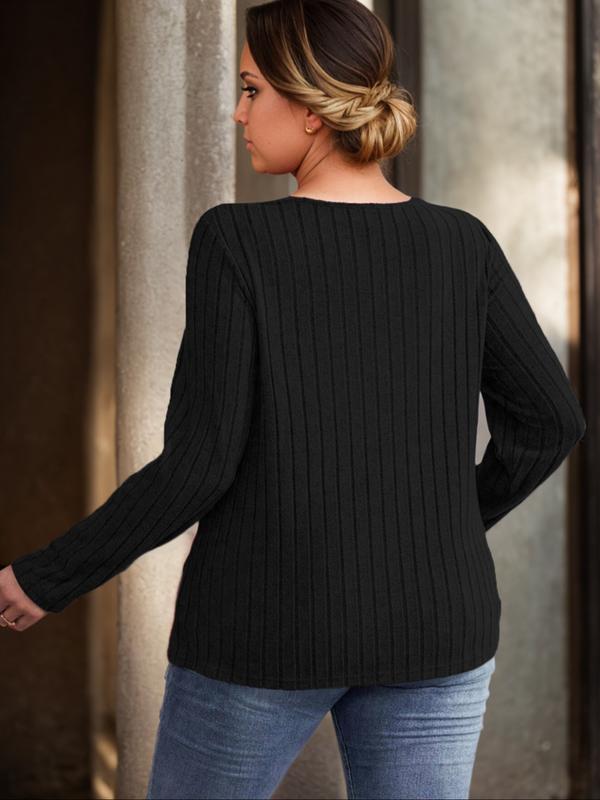 Plus Size Women's V Neck Knit Top, Sexy Ultra Soft Elastic Lightweight Fabric, Elegant Casual Fashion for Spring & Fall Seasons