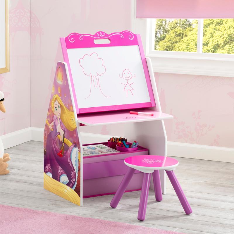 Time to get crafty! Designed to help your little one express their creative side, the Disney Princess Activity Center from Delta Children provides the space and storage your budding artist needs. The 3-in-1 design features a magnetic dry-erase board that can be positioned for your child to sit and draw with markers, or stowed upright to reveal a spacious tabletop to complete craft projects. On the other side of the easel a fabric toy bin and two tiers of storage pockets offers convenient compartments for art supplies, toys and books. Adorned with colorful graphics of girls’ favorite princesses, Belle, Ariel and Rapunzel, this Activity Center makes everyday endeavors more inspiring.