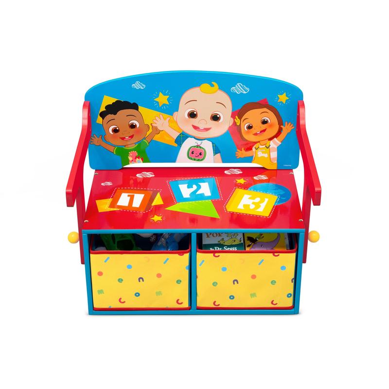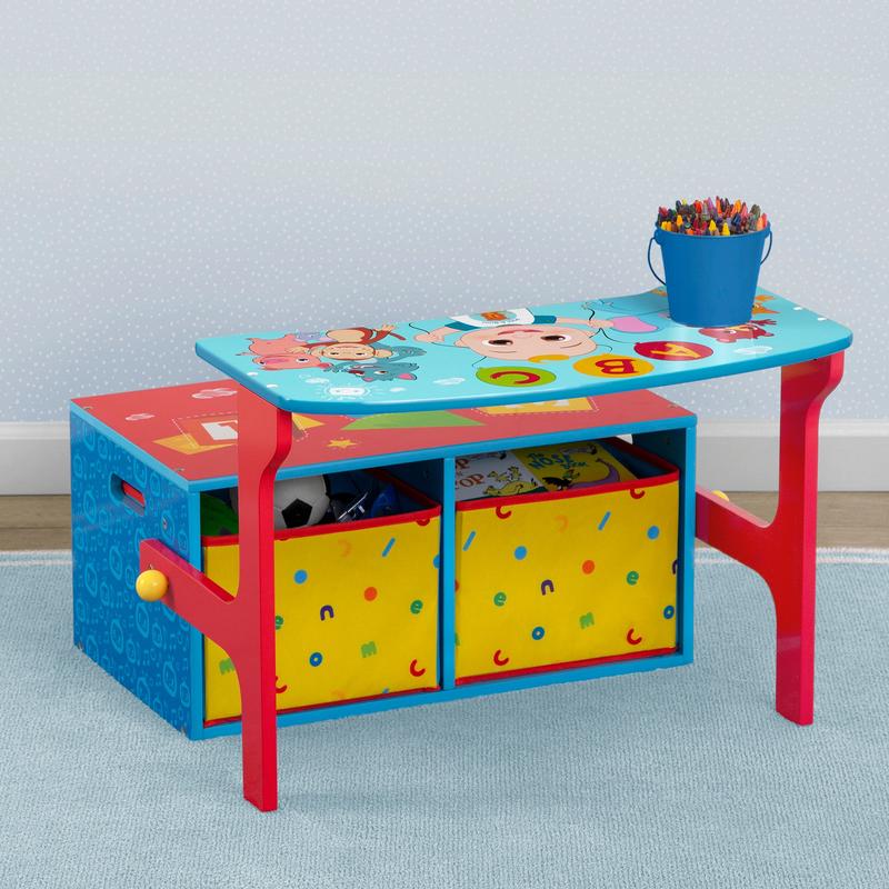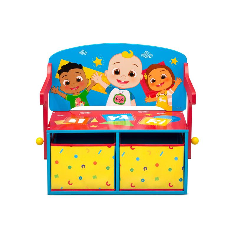 The CoComelon 2-in-1 Activity Bench and Desk by Delta Children showcases lovable characters from your child's favorite educational series. An ideal choice for your growing child, it features a 2-in-1 design that easily converts from a storage bench to a desk-transitioning from playtime to a perfect space for homework, crafts and more, in seconds! This incredibly versatile bench/desk also features ample storage underneath with two fabric bins, offering a perfect spot for kids to keep their toys, books or art supplies. A smart and stylish addition to your little one's space, this sturdy activity bench will be cherished for years to come.