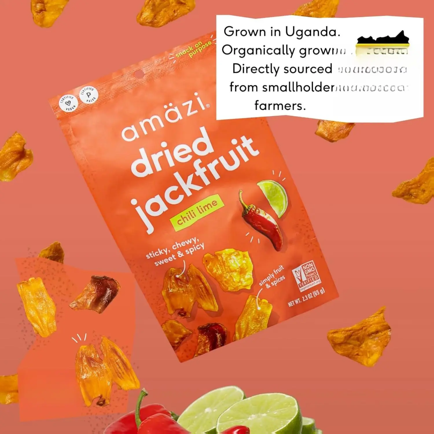 Jackfruit is rich in fiber, Vitamin B complex, and Vitamin C. Chili and lime add antioxidants and a zesty boost. Certified vegan, paleo, gluten-free, and nut-free, these chips are a healthy, guilt-free choice for a sweet and spicy tropical treat.