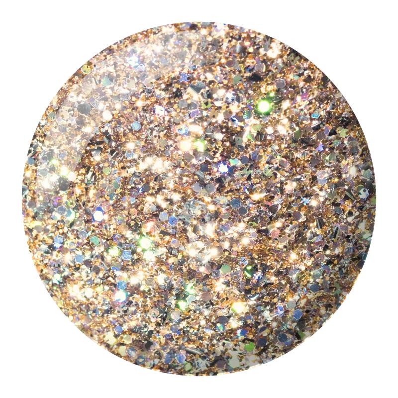 Dressed To The Nines DIVA #306 (light muted orange) — Turn every look into a double-take. Think golden-hour selfies in nail polish form. A juicy light orange packed with a double feature of silver and holographic glitter that catches the judge’s attention for a 10-point score.