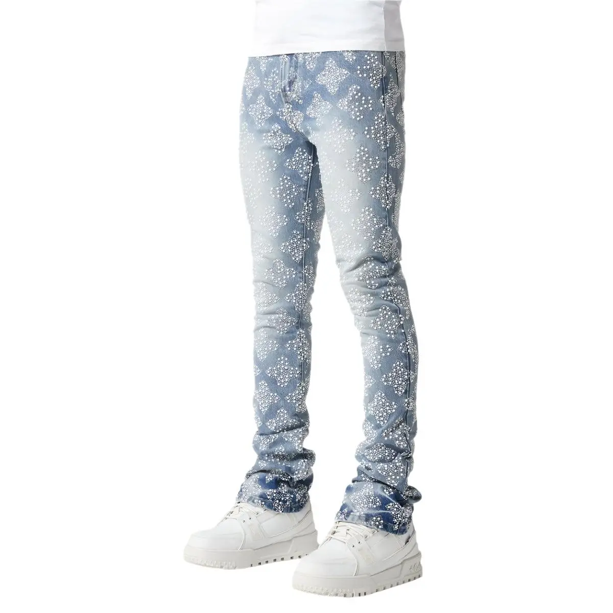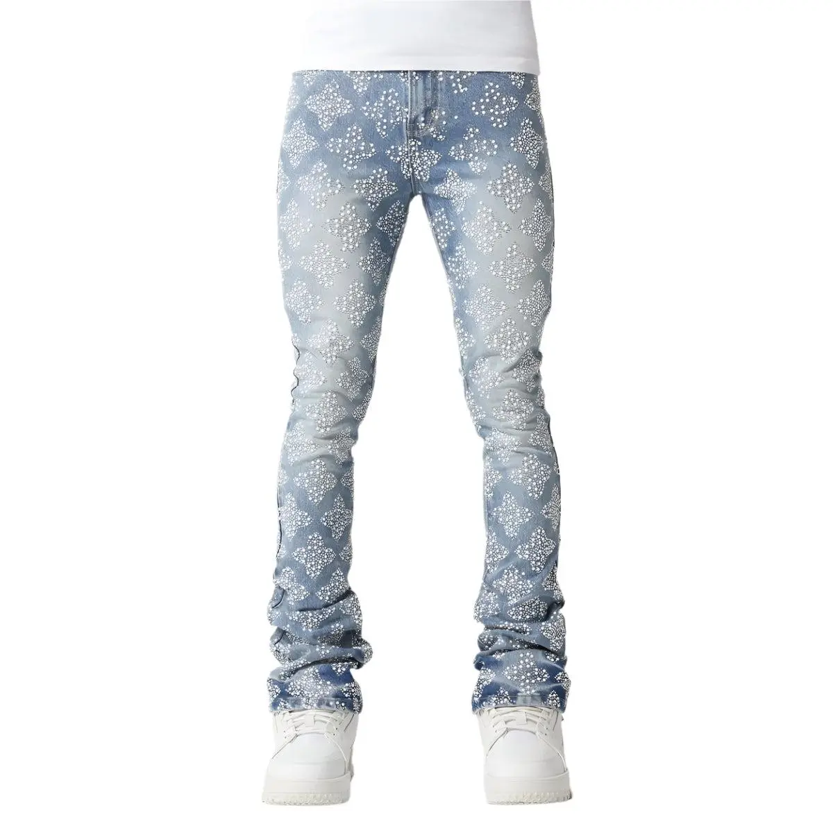 Step into the spotlight with the GUAPI Embellished Jeans! These aqua-blue denim beauties sparkle with rhinestone details that add just the right amount of glam. The stacked fit gives you a trendy edge, while the light wash keeps things fresh and fun. Perfect for turning heads wherever you go!