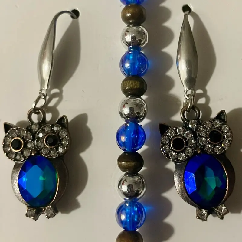 Blue Owl Themed Jewelry Set- Earrings & Bracelet