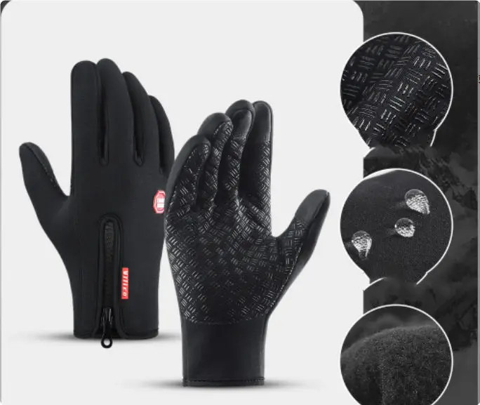 These Waterproof Touch Screen Motorcycle Gloves keep your hands warm and dry. Made with fleece lining, they offer windproof protection. Perfect for riding, skiing, or walking outdoors. The touch-screen fingertips allow you to use your phone or GPS without removing the gloves. Ideal for cold-weather adventures.