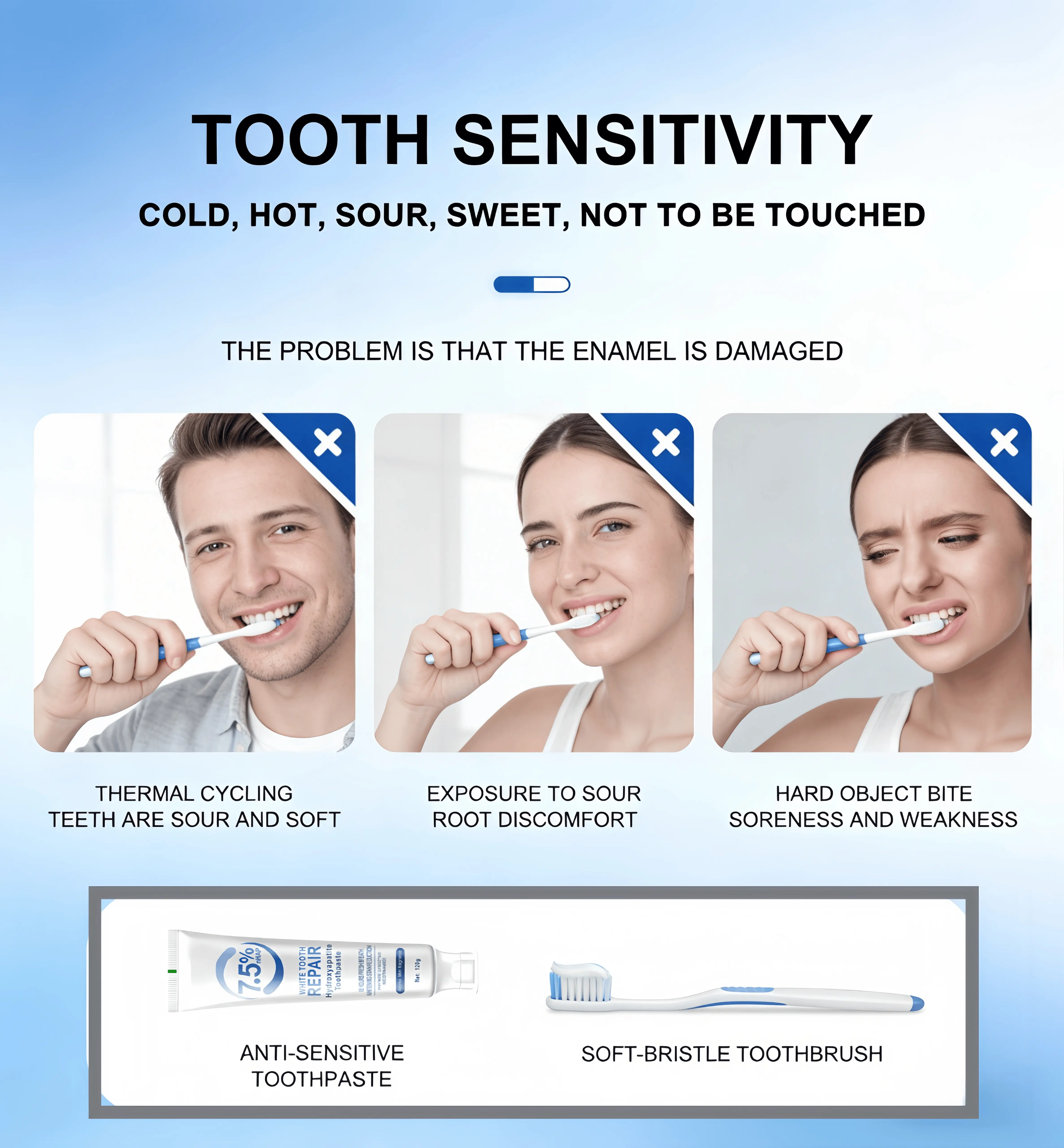 2Pcs7.5% hydroxyapatite, premium formula, teeth whitening and repairing toothpaste, effectively protects tooth enamel. Refreshing mint flavor, suitable for daily oral care.