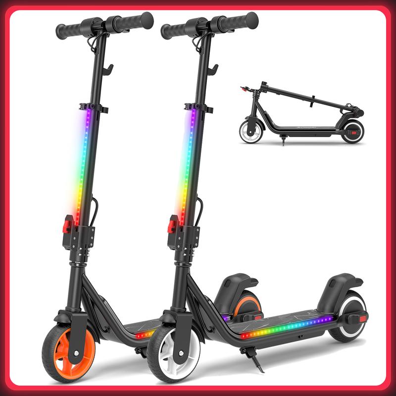·【3 - second Folding, Wide - face Tires】:Folds in 3 seconds. 6.5" wide - face tires ensure stable riding for kids electric scooter.Deck constructed from PMMA acrylic board with high light transmission for clear visibility. Resists yellowing and aging from sun exposure and rain