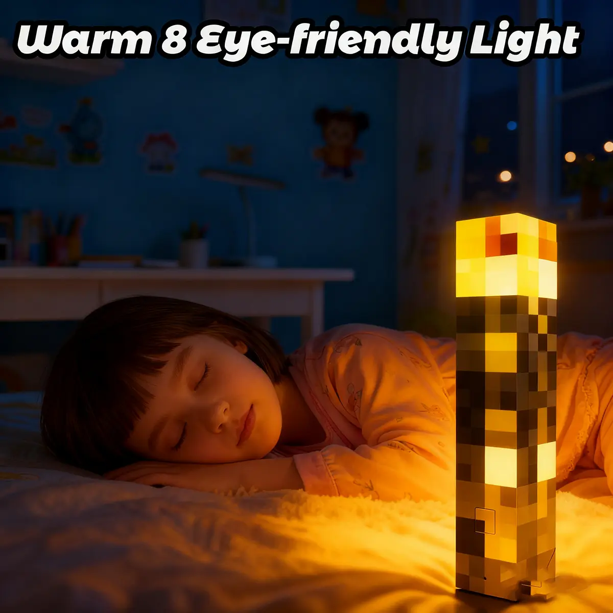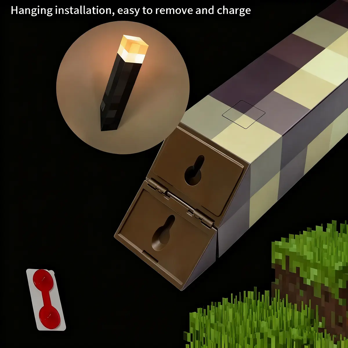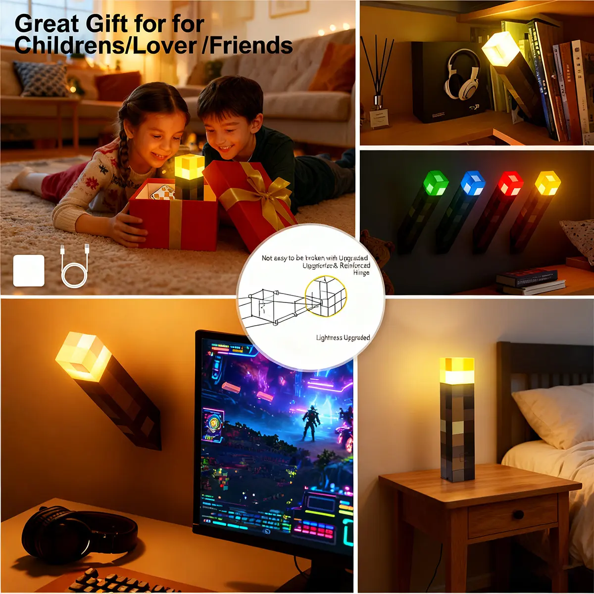 Pixel Torch Night Light – USB Pluggable LED Wall Lamp Fire Torch Light with 4-Color & 7-Color Modes | Handheld or Wall-Mount Flashlight for Kids Room, Holiday Parties & Creative Home Decor