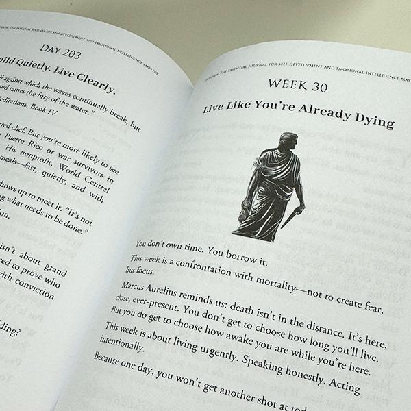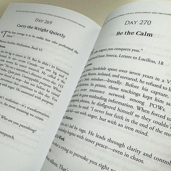 This isn’t a blank journal. It’s a complete 365-day workout for your mind. A powerful daily practice in Stoic wisdom designed to inspire, challenge, and strengthen.