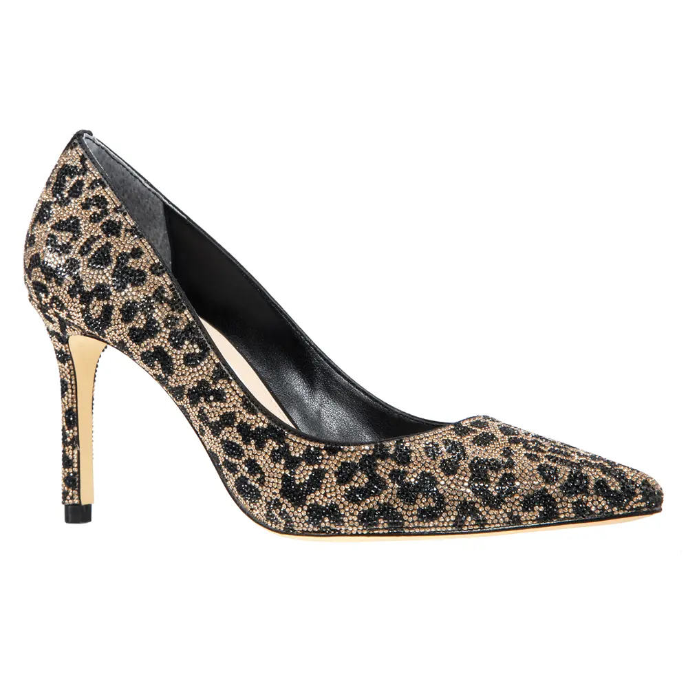 Nina Womens Nina Rhinestone Cheetah Pointed Toe Stiletto Pumps Dress Casual High Heel 3" & Up - Black, Brown