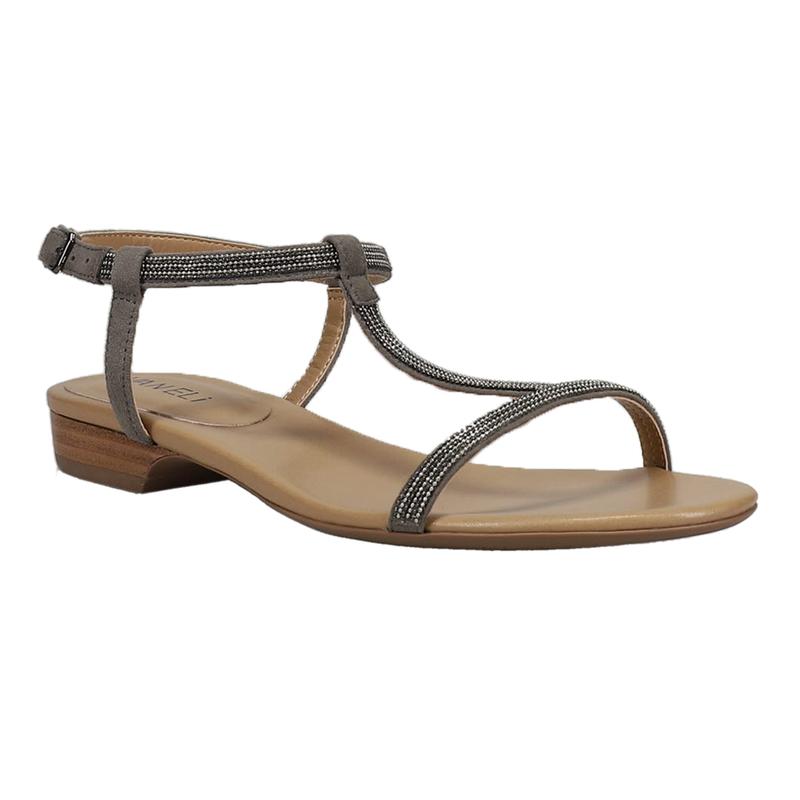 VANELi Womens Brea Chain Rhinestone T-Strap Casual Sandals Casual - Grey