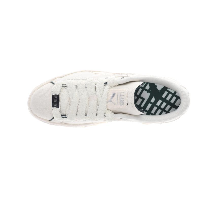 The Suede LAAMS ‘Blank Canvas’ is a DIY-inspired, double-layered shoe offering a customizable and artistic experience. Part artwork, part sneaker, the "Blank Canvas" Suede features a removable top layer of canvas on the upper, which can be peeledaway to reveal green fuzzy suede beneath.